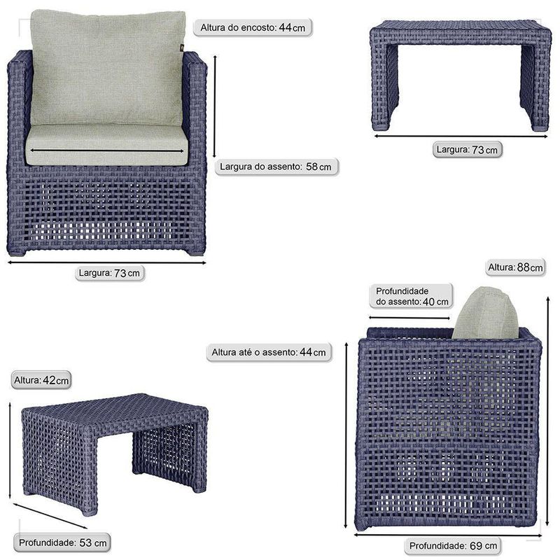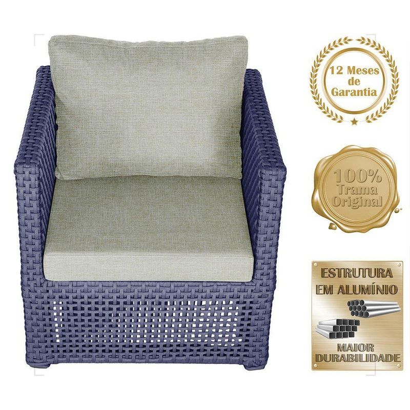 Mesa E 4 Poltronas Madri Corda Náutica Estofado 3 Trama AzulOBS: MANTENHA OS SEUS DADOS CADASTRAIS ATUALIZADOS, COMO ENDERECO E TELEFONE PARA CONTATO!Eleve o padrao da sua decoracao com a Poltrona Madri. Produzida em aluminio de alta resistencia e corda nautica premium, combina design moderno com durabilidade impecavel. O estofado em tecido impermeavel garante conforto e praticidade, mantendo sua beleza impecavel mesmo em areas externas. Design sofisticado para ambientes de alto padrao Materiais nobres que resistem ao tempo Conforto superior para receber com estilo Ideal para varandas, lounges, salas e areas gourmet Transforme qualquer espaco em um refugio de requinte e bom gosto. Adquira agora e descubra como o luxo tambem pode ser confortavel. Item Incluso 04 Poltronas 01 Mesa De Centro Especificacoes Do Produto Medidas Da Poltrona Altura Do Encosto: 44 Cm Altura Ate O Assento: 44 Cm Largura Total: 88 Cm Largura Do Assento: 58 Cm Profundidade Do Assento: 40 Cm Profundidade Total: 69 Cm Medidas Da Poltrona Altura: 42 Cm Largura: 73 Cm Profundidade: 53 Cm Por Se Tratar De Um Produto Artesanal Suas Medidas Podem Conter Pequenas Variacoes. Material Do Acabamento: Pintura. Material Da Estrutura: Aluminio. Material Da Trama: Corda Nautica. Material Do Estofado: Espuma E Tecido Impermeavel. Pintura: Eletrostatica Solda: Soldado Mig, De Alta Resistencia. Marca: Trama Original Fabricante: Trama Original Garantia: 12 Meses Contra Defeitos De Fabrica. Ideal para ambientes Internos, varandas, ediculas, area de lazer, salas de estar, sala de jogos, churrasqueiras, sala de filme, recepcao, sala de espera entre outros. Eleve sua experiencia de relaxamento com essa peca exclusiva! OBS: Fotos meramente ilustrativas. Tonalidades podem variar dependendo do monitor. Os objetos que ambientam as Fotos nao acompanham o produto. Antes de comprar o seu produto verifique as medidas, o local onde pretende instalar e se necessario contratar o servico de um profissional qualificado. Produto conhecido como: poltrona aluminio, poltrona corda nautica, poltrona estofado impermeavel, poltrona para varanda gourmet, poltrona area externa luxo, poltrona de design sofisticado, poltrona moderna aluminio e corda