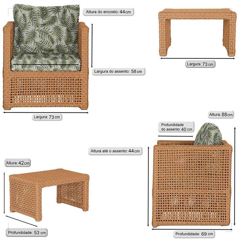 Mesa E 4 Poltronas Madri Corda Náutica Estofado 5 Trama Terra CotaOBS: MANTENHA OS SEUS DADOS CADASTRAIS ATUALIZADOS, COMO ENDERECO E TELEFONE PARA CONTATO!Eleve o padrao da sua decoracao com a Poltrona Madri. Produzida em aluminio de alta resistencia e corda nautica premium, combina design moderno com durabilidade impecavel. O estofado em tecido impermeavel garante conforto e praticidade, mantendo sua beleza impecavel mesmo em areas externas. Design sofisticado para ambientes de alto padrao Materiais nobres que resistem ao tempo Conforto superior para receber com estilo Ideal para varandas, lounges, salas e areas gourmet Transforme qualquer espaco em um refugio de requinte e bom gosto. Adquira agora e descubra como o luxo tambem pode ser confortavel. Item Incluso 04 Poltronas 01 Mesa De Centro Especificacoes Do Produto Medidas Da Poltrona Largura Total: 88 Cm Largura Do Assento: 58 Cm Profundidade Total: 69 Cm Profundidade Do Assento: 40 Cm Altura Do Encosto: 44 Cm Altura Ate O Assento: 44 Cm Medidas Da Poltrona Altura: 42 Cm Largura: 73 Cm Profundidade: 53 Cm Por Se Tratar De Um Produto Artesanal Suas Medidas Podem Conter Pequenas Variacoes. Material Do Acabamento: Pintura. Material Da Estrutura: Aluminio. Material Da Trama: Corda Nautica. Material Do Estofado: Espuma E Tecido Impermeavel. Pintura: Eletrostatica Solda: Soldado Mig, De Alta Resistencia. Marca: Trama Original Fabricante: Trama Original Garantia: 12 Meses Contra Defeitos De Fabrica. Ideal para ambientes Internos, varandas, ediculas, area de lazer, salas de estar, sala de jogos, churrasqueiras, sala de filme, recepcao, sala de espera entre outros. Eleve sua experiencia de relaxamento com essa peca exclusiva! OBS: Fotos meramente ilustrativas. Tonalidades podem variar dependendo do monitor. Os objetos que ambientam as Fotos nao acompanham o produto. Antes de comprar o seu produto verifique as medidas, o local onde pretende instalar e se necessario contratar o servico de um profissional qualificado. Produto conhecido como: poltrona aluminio, poltrona corda nautica, poltrona estofado impermeavel, poltrona para varanda gourmet, poltrona area externa luxo, poltrona de design sofisticado, poltrona moderna aluminio e corda.