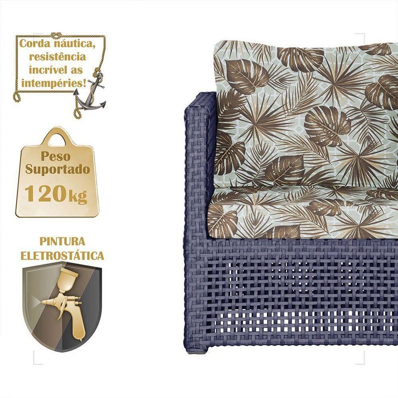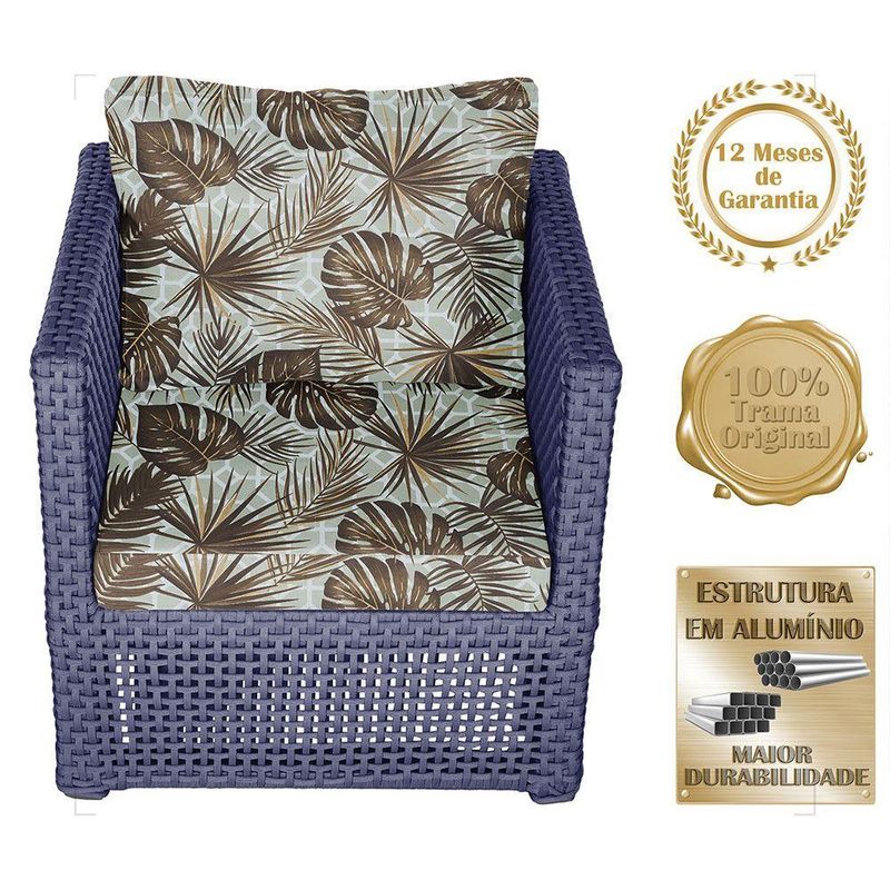 Mesa E 4 Poltronas Madri Corda Náutica Estofado 6 Trama AzulOBS: MANTENHA OS SEUS DADOS CADASTRAIS ATUALIZADOS, COMO ENDERECO E TELEFONE PARA CONTATO!Eleve o padrao da sua decoracao com a Poltrona Madri. Produzida em aluminio de alta resistencia e corda nautica premium, combina design moderno com durabilidade impecavel. O estofado em tecido impermeavel garante conforto e praticidade, mantendo sua beleza impecavel mesmo em areas externas. Design sofisticado para ambientes de alto padrao Materiais nobres que resistem ao tempo Conforto superior para receber com estilo Ideal para varandas, lounges, salas e areas gourmet Transforme qualquer espaco em um refugio de requinte e bom gosto. Adquira agora e descubra como o luxo tambem pode ser confortavel. Item Incluso 04 Poltronas 0 1 Mesa De Centro Especificacoes Do Produto Medidas Da Poltrona Largura Total: 88 Cm Largura Do Assento: 58 Cm Profundidade Total: 69 Cm Profundidade Do Assento: 40 Cm Altura Do Encosto: 44 Cm Altura Ate O Assento: 44 Cm Por Se Tratar De Um Produto Artesanal Suas Medidas Podem Conter Pequenas Variacoes. Material Do Acabamento: Pintura. Material Da Estrutura: Aluminio. Material Da Trama: Corda Nautica. Material Do Estofado: Espuma E Tecido Impermeavel. Pintura: Eletrostatica Solda: Soldado Mig, De Alta Resistencia. Marca: Trama Original Fabricante: Trama Original Garantia: 12 Meses Contra Defeitos De Fabrica. Ideal para ambientes Internos, varandas, ediculas, area de lazer, salas de estar, sala de jogos, churrasqueiras, sala de filme, recepcao, sala de espera entre outros. Eleve sua experiencia de relaxamento com essa peca exclusiva! OBS: Fotos meramente ilustrativas. Tonalidades podem variar dependendo do monitor. Os objetos que ambientam as Fotos nao acompanham o produto. Antes de comprar o seu produto verifique as medidas, o local onde pretende instalar e se necessario contratar o servico de um profissional qualificado. Produto conhecido como: poltrona aluminio, poltrona corda nautica, poltrona estofado impermeavel, poltrona para varanda gourmet, poltrona area externa luxo, poltrona de design sofisticado, poltrona moderna aluminio e corda.