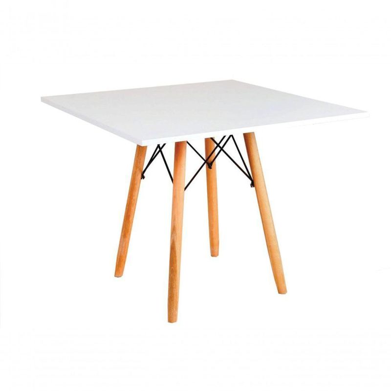 Mesa Eames Eiffel Quadrada 90 Cm - BrancaMesa Quadrada Eames EiffelA mesa quadrada Eames Eiffel é perfeita para compor ambientes modernos, versáteis e elegantes. Com design icônico e atemporal, ela combina tampo resistente com base em madeira no estilo Eiffel, que garante estabilidade e um toque sofisticado. Ideal para salas de jantar, cozinhas, espaços gourmet, áreas comerciais e muito mais. Disponível em diversos tamanhos para atender às suas necessidades.Mesa Eames Eiffel Quadrada 90 Cm - BrancaMedidas: 90 x 90 cm x 76 cm altura