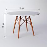 Mesa Eiffel Wood Cobre Tampo De Madeira 90 Cm Branco Asturias - Cor: MarromMESA EIFFEL WOOD COBRE TAMPO DE MADEIRA 90 CM BRANCO ASTURIAS Que tal a Mesa de Jantar Eiffel Wood?A sua cozinha ou sala de jantar só está completa com uma boa mesa para protagonizar as refeições. E se busca um móvel moderno e com uma ousada combinação de cores - afinal, o cobre presente na base dá um toque luxuoso à peça -, o modelo Eiffel Wood é para você! Com o visual inovador e estrutura arrojada, ela acomoda os seus convidados enquanto deixa o momento mais intimista por conta do formato. Mas não é só a sua rotina que ganha uma bela aliada: ela também complementa a decoração com sofisticação, além de ser muito fácil de combinar com cadeiras da mesma cor ou coloridas, seja para garantir um visual monocromático ou voltado para algo aventureiro. Qual opção é mais a cara do seu doce lar?Conteúdo da Embalagem: 1 Mesa de JantarCor do tampo: BrancoCor da base dos pés: CobreMaterial dos pés: MadeiraDescrição do tamanho: Altura: 76 cmLargura: 90 cmProfundidade: 90 cmInstruções/Cuidados: Limpar com pano levemente umedecidoMaterial: Estrutura em Madeira / Base em Ferro Maciço / Tampo em MDF 18 mm / Acabamento em Cobre Semi BrilhoModelo: Eiffel WoodPeso do Produto: 15 KgProduto precisa de Montagem?: SimMesa Eiffel Wood Cobre Tampo de Madeira 90 Cm Branco Asturias