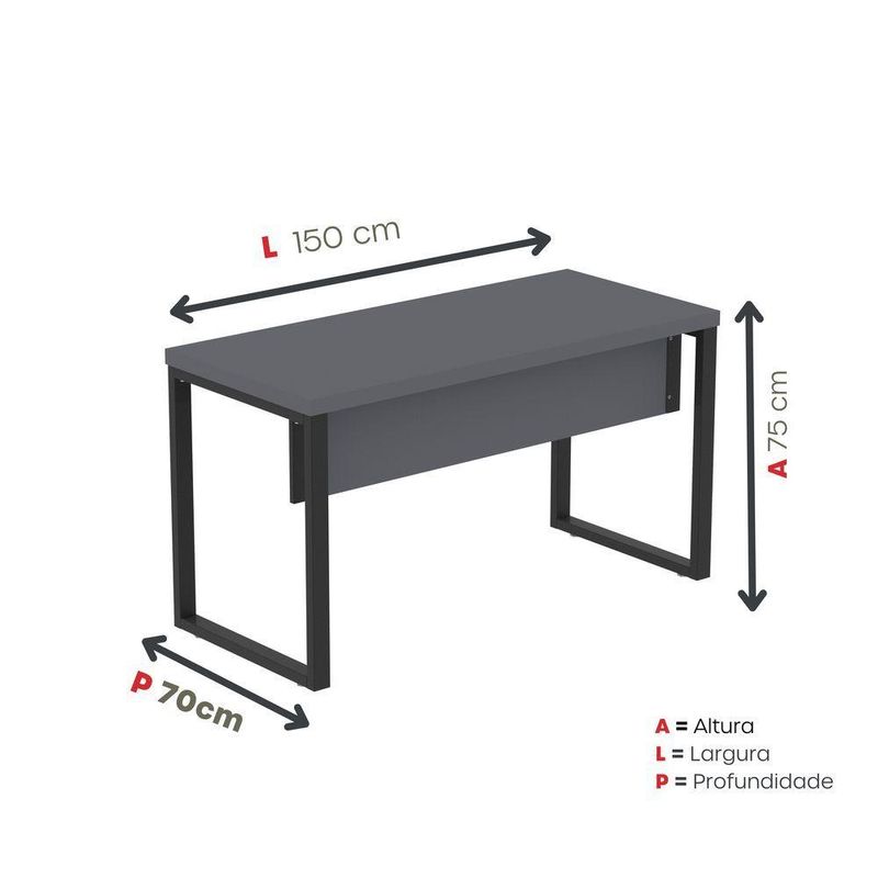 Mesa Escritório 1500x700x750mm M150/70pe40tub Grafito/pretoMesa Escritório 1500x700x750mm M150/70pe40tub Grafito/Preto -A Mesa de Escritório Retangular 150/70cm pé tub da linha PE40 é a solução ideal para quem busca praticidade, funcionalidade e design moderno no ambiente de trabalho. Compacta e resistente, é perfeita para escritórios, home office ou espaços corporativos menores, oferecendo conforto e eficiência no dia a dia. Produzida com materiais de alta qualidade, garante durabilidade, fácil manutenção e ótimo aproveitamento do espaço.Ideal para quem precisa de uma mesa funcional sem abrir mão da estética e da organização.Manual de montagem:://drive..com/file/d/1MfuJe17sJIPUemcE8fD3EMw9Yj6ulyvG/view://.com/watch?v=98vDJ8m2bD4Características Gerais do Produto: - Material: Eucalipito - Material da Estrutura: MDP - Altura: 75 cm - Largura: 150cm - Peso: 31,131KG - Profundidade: 70cmAcompanha o produto: - 1 mesa 150x70cm pé tub Garantia: - De fabrica