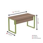 Mesa Escritório 1700x700x750 M170/70pe40tub Walnut/verde MiróMesa Escritório 1700x700x750 M170/70pe40tub Walnut/Verde Miró -A Mesa de Escritório Retangular 170/70cm pé tub da linha PE40 é a solução ideal para quem busca praticidade, funcionalidade e design moderno no ambiente de trabalho. Compacta e resistente, é perfeita para escritórios, home office ou espaços corporativos menores, oferecendo conforto e eficiência no dia a dia. Produzida com materiais de alta qualidade, garante durabilidade, fácil manutenção e ótimo aproveitamento do espaço.Ideal para quem precisa de uma mesa funcional sem abrir mão da estética e da organização.Manual de montagem:://drive..com/file/d/1MfuJe17sJIPUemcE8fD3EMw9Yj6ulyvG/view://.com/watch?v=98vDJ8m2bD4Características Gerais do Produto: - Material: Eucalipito - Material da Estrutura: MDP - Altura: 75 cm - Largura: 170cm - Peso: 33,556kg - Profundidade: 70cmAcompanha o produto: - 1 mesa 170x70cm pé tub Garantia: - De fabrica