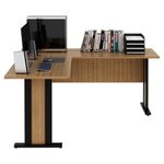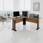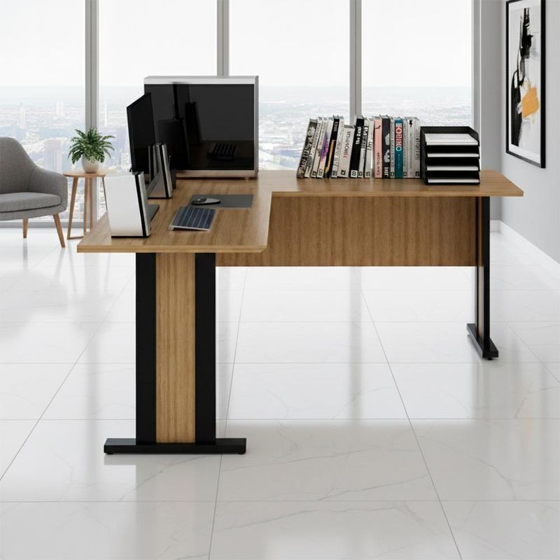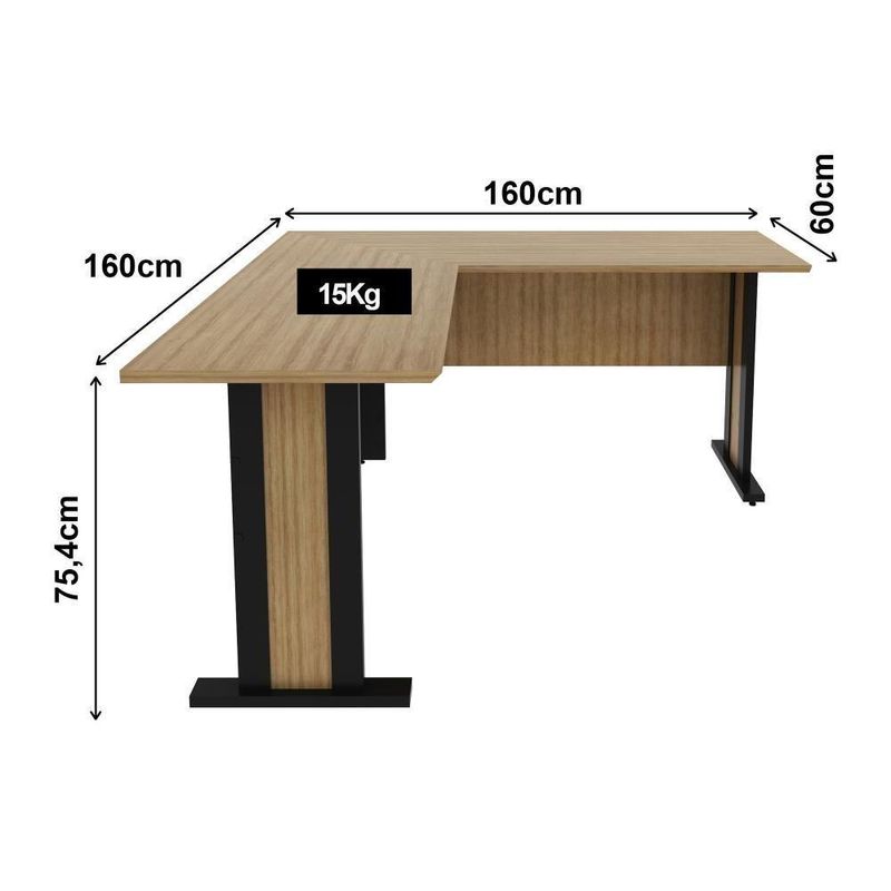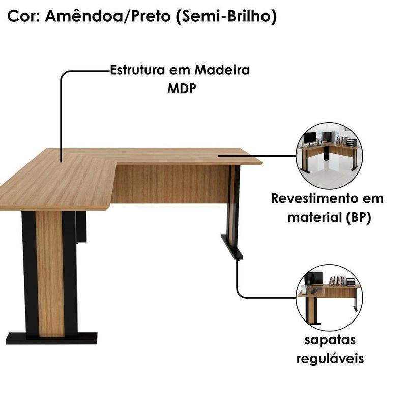 Mesa Escrivaninha De Canto Para Escritório 160 Cm Me4195 Amendoa Preto Tecno Mobili Amendoa PretoA Mesa de Canto Escritório ME4195 é a solução ideal para otimizar espaços em escritórios corporativos, home offices e salas de estudo, oferecendo funcionalidade e visual moderno para o dia a dia de trabalho, sendo fabricada em estrutura em madeira MDP de 15 mm, tampo em MDP de 25 mm e revestimento em material BP, com acabamento traseiro no mesmo padrão de cor e material, além de pés em madeira MDP de 25 mm com sapatas reguláveis, suportando até 15 kg e contribuindo para um ambiente de trabalho mais organizado e eficiente. Este produto será entregue em 1 volume.Medidas:Altura: 75,4 cmLargura: 160 cmProfundidade: 60 cmEspecificações Técnicas:Modelo: ME4195Materiais: Madeira MDPEstilo: ModernoSistema de montagemMontagem, desmontagem e outras instalações serão de responsabilidade do cliente!Parafusos, pregos, cantoneiras e cavilhas.Recomendação de LimpezaPara a limpeza, utilize um pano seco para retirada do pó.Evite o uso de produtos abrasivos e o contato direto com a umidade.A Mesa de Escritório ME4195 é a escolha certa para ambientes corporativos, combinando praticidade e design para deixar a rotina de trabalho mais funcional e organizada.Importante SaberAs imagens são meramente ilustrativas, não acompanham objetos de decoração e eletrônicos.A tonalidade da cor do produto pode variar de acordo a calibração de cores do seu monitor, a iluminação do ambiente ou sua percepção visual.O cliente deve verificar a quantidade de VOLUMES descritos na nota, a situação da embalagem, caso haja algum dano NÃO ASSINE o comprovante de recebimento e RECUSE a mercadoria.Não nos responsabilizamos por subir escadas/elevadores ou pelo transporte por guincho em apartamentos. Eventuais despesas são de responsabilidade do comprador.Confira as dimensões do produto e certifique-se de que passarão normalmente por supostos elevadores, portas, escadas ou corredores de sua residência. Recomendamos que o responsável pelo recebimento confira se os produtos entregues correspondem ao modelo e à quantidade adquirida.Garantia De Fábrica90 dias para eventuais defeitos de fabricação. NA | Cor: Amendoa Preto