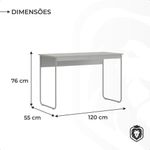 Mesa Escrivaninha Home Office Aço E Madeira Criare PretoDesign moderno e inteligente com linhas simples e elegantes, essa escrivaninha complementa qualquer ambiente, desde os mais modernos até os mais clássicos. Seu visual minimalista combina facilmente com diversos estilos de decoração. Funcionalidade e estilo em um único móvel!CARACTERÍSTICAS PRINCIPAIS:- Estrutura em aço reforçado, que oferece mais durabilidade e resistência ao móvel;- Tampo em MDF/MDP de excelente qualidade ;DIMENSÕES DO PRODUTO:Largura: 120 cmProfundidade: 55 cmAltura: 76 cmLimpeza do produto:Para maior durabilidade, recomenda-se que a limpeza seja feita com pano limpo e levemente umedecido em água e sabão neutro, seguida de pano limpo e seco.INFORMAÇÕES ADICIONAIS:- Os objetos que ambientam as fotos não acompanham o produto;- O produto será entregue desmontado;- É de inteira responsabilidade do cliente a montagem do produto e/ou instalação, custos de transporte por escadas e/ou elevadores, guincho ou içamento, assim como possíveis irregularidades provenientes de manuseio inadequado;- Embora o produto acompanhe o manual de montagem, verifique a complexidade antes de decidir montá-lo sozinho, recomendamos que contrate um de sua confiança;- Fique atento, nossas cores podem sofrer alterações dependendo do seu monitor;- ANTES DE MONTAR O SEU PRODUTO, certifique-se que todas as instruções dispostas no manual, bem como todas as ferragens descritas, estejam presentes dentro da embalagem. Verifique se há alguma peça danificada, caso esteja, prestaremos a devida assistência dentro do prazo da .