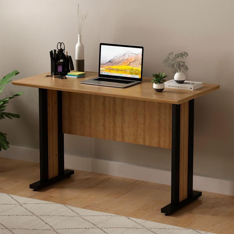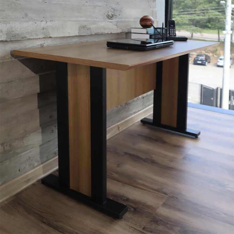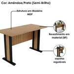 Mesa Escrivaninha Para Escritório 117 Cm Me4194 Amendoa Preto Tecno Mobili Amendoa PretoA Mesa de Escritório ME4194 foi desenvolvida para atender escritórios corporativos, home offices e salas de estudo, combinando praticidade e design para valorizar o dia a dia de trabalho, sendo fabricada com estrutura em madeira MDP de 15 mm, tampo em MDP de 25 mm e revestimento em material BP, com acabamento traseiro no mesmo padrão de cor e material, pés em madeira MDP de 25 mm com sapatas reguláveis, suportando até 12 kg e proporcionando uma solução funcional para manter o espaço de trabalho organizado. Este produto será entregue em 1 volume.Medidas:Altura: 75,4 cmLargura: 117 cmProfundidade: 60 cmEspecificações Técnicas:Modelo: ME4194Materiais: Madeira MDPEstilo: ModernoSistema de montagemMontagem, desmontagem e outras instalações serão de responsabilidade do cliente!Parafusos, pregos, cantoneiras e cavilhas.Recomendação de LimpezaPara a limpeza, utilize um pano seco para retirada do pó.Evite o uso de produtos abrasivos e o contato direto com a umidade.A Mesa de Escritório ME4194 é ideal para ambientes corporativos, unindo funcionalidade e design para tornar a rotina mais prática e organizada.Importante SaberAs imagens são meramente ilustrativas, não acompanham objetos de decoração e eletrônicos.A tonalidade da cor do produto pode variar de acordo a calibração de cores do seu monitor, a iluminação do ambiente ou sua percepção visual.O cliente deve verificar a quantidade de VOLUMES descritos na nota, a situação da embalagem, caso haja algum dano NÃO ASSINE o comprovante de recebimento e RECUSE a mercadoria.Não nos responsabilizamos por subir escadas/elevadores ou pelo transporte por guincho em apartamentos. Eventuais despesas são de responsabilidade do comprador.Confira as dimensões do produto e certifique-se de que passarão normalmente por supostos elevadores, portas, escadas ou corredores de sua residência. Recomendamos que o responsável pelo recebimento confira se os produtos entregues correspondem ao modelo e à quantidade adquirida.Garantia De Fábrica90 dias para eventuais defeitos de fabricação. NA | Cor: Amendoa Preto