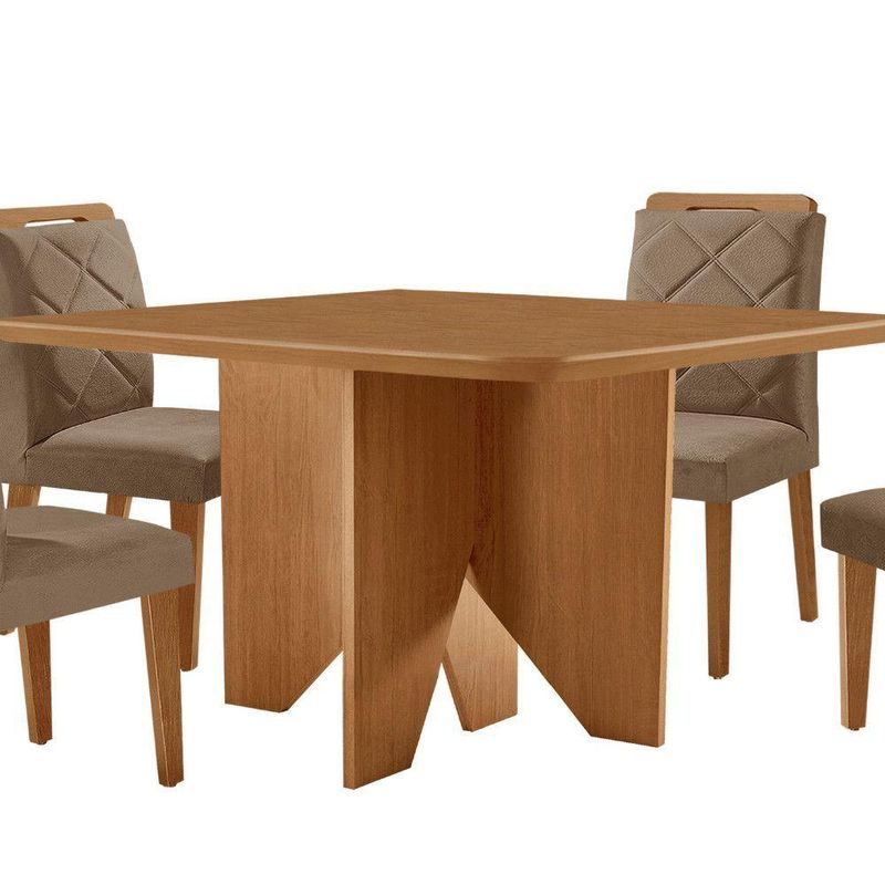 Mesa Evora 90 Mdf Canto Copo E Com 4 Cadeiras Melissa Veludo Capuccino NaturalleMesa de Jantar Evora 90cm MDF Canto copo e com 4 Cadeiras MelissaA Mesa Evora com as Cadeiras Melissa e uma combinacao que exala elegancia e sofisticacao para um espaco compacto. A mesa se destaca por sua base unica, que traz um ar de modernidade ao ambiente. As Cadeiras Melissa complementam o conjunto com assentos e encostos estofados, proporcionando um conforto excepcional para longos periodos de uso. Um detalhe especial sao os bordados no encosto das cadeiras, que acrescentam um charme extra e dao um toque final refinado ao espaco. Essa combinacao e ideal para criar uma atmosfera acolhedora e convidativa para seu lar. Caracteristicas: Marca: Moderna Mobilia Mesa e Cadeiras Tampo Canto Copo Tipo de Acabamento: Pintura Uv Material da Estrutura: 100 MDF Possui Vidro: Nao Dimensoes da Mesa: Altura: 80cm Largura: 90cm Profundidade: 90cm Dimensoes das Cadeiras: Altura: 102,5cm Largura: 42cm Profundidade: 56cm Garantia do Fornecedor: 3 meses Informacoes Importantes: As tonalidades das cores podem sofrer alteracao de acordo com a configuracao de cada monitor. Os objetos que ambientam as fotos nao acompanham o produto. Nao disponibilizamos a montagem do produto. Nao nos responsabilizamos por danos no produto causado por montagem. Verifique as dimensoes do produto e certifique-se que o percurso que ele fara ate o local de uso permite sua passagem. Para mais informacoes confira as politicas de entrega do site. Favor verificar o produto no ato da entrega e em caso de problemas decorrentes no transporte (arranhados, quebra, batida, amassados) deve-se efetuar a ressalva na nota fiscal para conhecimento da transportadora e comunicar imediatamente a loja. Moderna Mobilia reserva o direito de alterar as especificacoes tecnicas sem previo aviso. As medidas contidas no site podem sofrer variacoes de acordo com a montagem, tipo de costura etc.