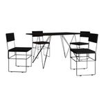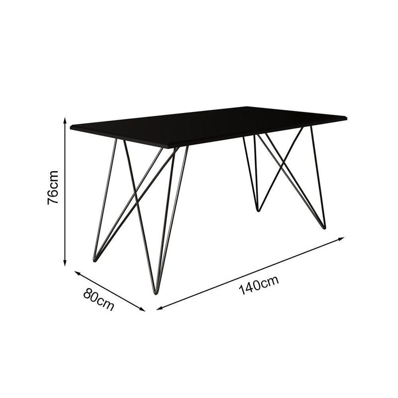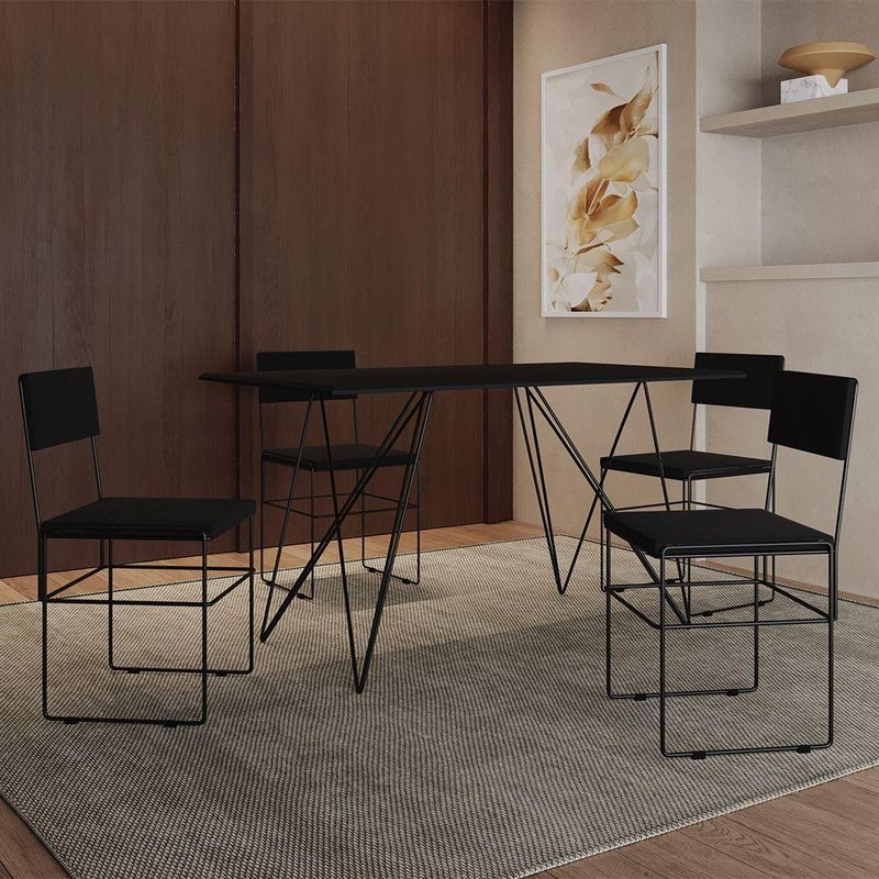 Mesa Jantar Industrial Trama 1,40x0,80m Preta Com 4 Cadeiras Estofadas Vitória PretaO Conjunto Vitória tem um design industrial que remete a leveza e sofisticação a sua sala de jantar ou escritório. Além disso, é uma ótima opção pra quem procura um produto moderno e bonito, com um ótimo acabamento. Ideal pra quem busca criar um ambiente moderno.Tipo: ConjuntoModelo: VitóriaTecido: VeludoCor Tampo da Mesa: PretoCor da Base da Mesa: PretoCor do assento da Cadeira: PretoCor da Base da Cadeira: PretoMedidas Cadeira:Altura: 88cmLargura: 42cmComprimento: 42cmMedidas Mesa:Altura: 76cmLargura: 80cmComprimento: 140cmATENÇÃOIMAGENS MERAMENTE ILUSTRATIVAS REALIZADO EDIÇÃO, PODENDO HAVER UMA PEQUENA VARIAÇÃO DE COR DEPENDENDO DE CADA TELA OU MONITOR.Mesa Jantar Industrial Trama 1,40x0,80m Preta com 4 Cadeiras Estofadas Vitória Preta