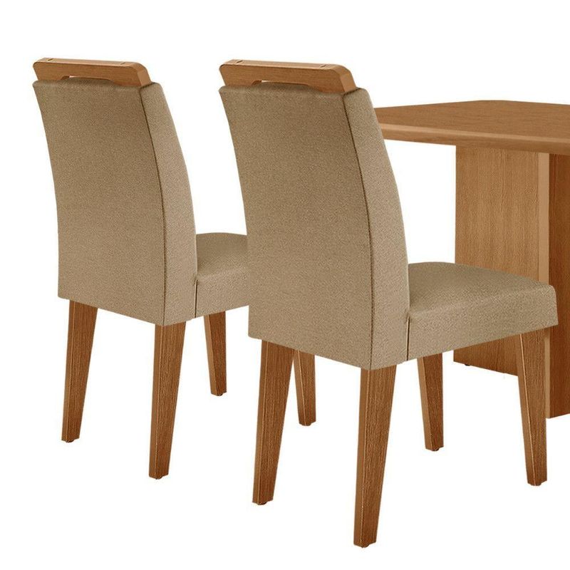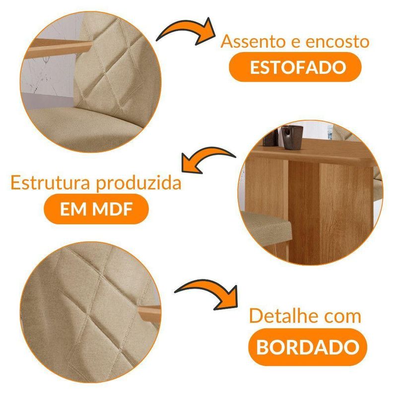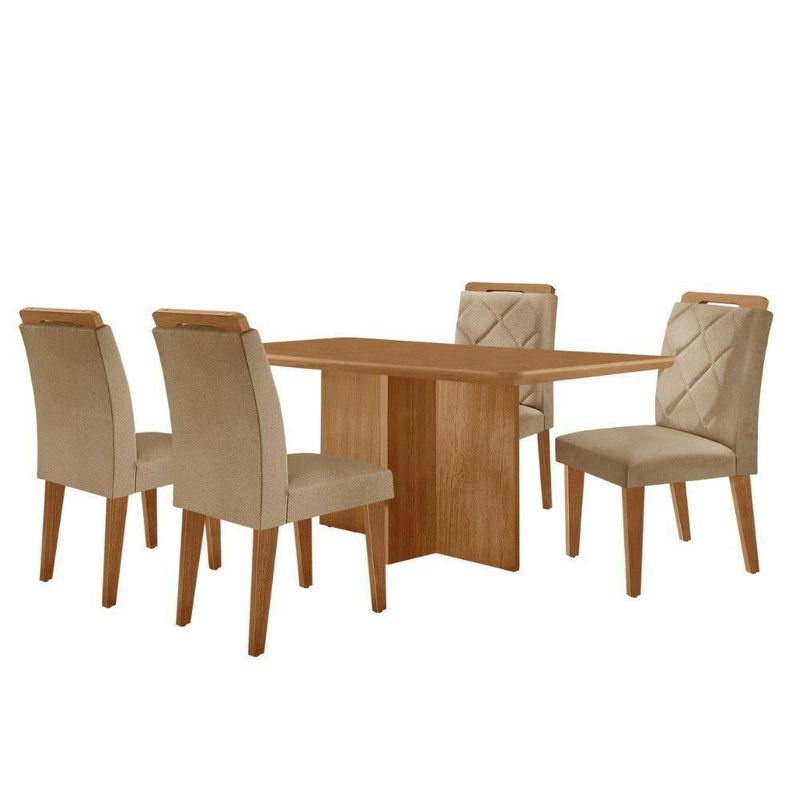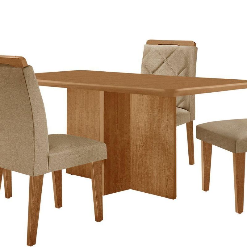 Mesa Olimpia 120 Mdf Canto Copo E Com 4 Cadeiras Melissa Turim 07 NaturalleMesa de Jantar Olimpia 120cm MDF Canto copo e com 4 Cadeiras MelissaO conjunto de Mesa Olimpia com as Cadeiras Melissa e um verdadeiro simbolo de elegancia e sofisticacao para seu lar. A base da mesa e destacada por detalhes unicos que adicionam um toque de refinamento ao ambiente. As Cadeiras Melissa, com seus assentos e encostos estofados, proporcionam conforto excepcional. Os bordados sofisticados nas cadeiras fazem toda a diferenca, completando o conjunto com um charme especial. Este conjunto e ideal para quem busca uma combinacao de estilo e conforto para transformar seu espaco. Caracteristicas: Marca: Moderna Mobilia Mesa e Cadeiras Tampo Canto Copo Tipo de Acabamento: Pintura Uv Material da Estrutura: 100 MDF Possui Vidro: Nao Dimensoes da Mesa: Altura: 80cm Largura: 120cm Profundidade: 80cm Dimensoes das Cadeiras: Altura: 102,5cm Largura: 42cm Profundidade: 56cm Garantia do Fornecedor: 3 meses Informacoes Importantes: As tonalidades das cores podem sofrer alteracao de acordo com a configuracao de cada monitor. Os objetos que ambientam as fotos nao acompanham o produto. Nao disponibilizamos a montagem do produto. Nao nos responsabilizamos por danos no produto causado por montagem. Verifique as dimensoes do produto e certifique-se que o percurso que ele fara ate o local de uso permite sua passagem. Para mais informacoes confira as politicas de entrega do site. Favor verificar o produto no ato da entrega e em caso de problemas decorrentes no transporte (arranhados, quebra, batida, amassados) deve-se efetuar a ressalva na nota fiscal para conhecimento da transportadora e comunicar imediatamente a loja. Moderna Mobilia reserva o direito de alterar as especificacoes tecnicas sem previo aviso. As medidas contidas no site podem sofrer variacoes de acordo com a montagem, tipo de costura etc.