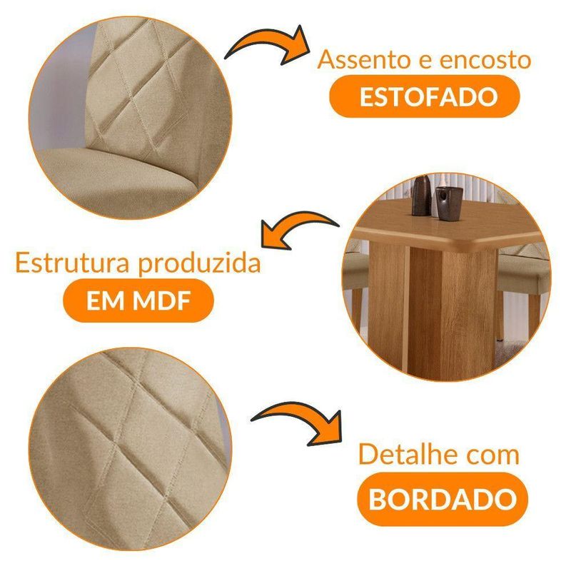 Mesa Olimpia 90 Mdf Canto Copo E Com 4 Cadeiras Melissa Turim 07 NaturalleMesa de Jantar Olimpia 90cm MDF Canto copo e com 4 Cadeiras MelissaO conjunto de Mesa Olimpia com as Cadeiras Melissa e um verdadeiro simbolo de elegancia e sofisticacao para seu lar. A base da mesa e destacada por detalhes unicos que adicionam um toque de refinamento ao ambiente. As Cadeiras Melissa, com seus assentos e encostos estofados, proporcionam conforto excepcional. Os bordados sofisticados nas cadeiras fazem toda a diferenca, completando o conjunto com um charme especial. Este conjunto e ideal para quem busca uma combinacao de estilo e conforto para transformar seu espaco. Caracteristicas: Marca: Moderna Mobilia Mesa e Cadeiras Tampo Canto Copo Tipo de Acabamento: Pintura Uv Material da Estrutura: 100 MDF Possui Vidro: Nao Dimensoes da Mesa: Altura: 80cm Largura: 90cm Profundidade: 90cm Dimensoes das Cadeiras: Altura: 102,5cm Largura: 42cm Profundidade: 56cm Garantia do Fornecedor: 3 meses Informacoes Importantes: As tonalidades das cores podem sofrer alteracao de acordo com a configuracao de cada monitor. Os objetos que ambientam as fotos nao acompanham o produto. Nao disponibilizamos a montagem do produto. Nao nos responsabilizamos por danos no produto causado por montagem. Verifique as dimensoes do produto e certifique-se que o percurso que ele fara ate o local de uso permite sua passagem. Para mais informacoes confira as politicas de entrega do site. Favor verificar o produto no ato da entrega e em caso de problemas decorrentes no transporte (arranhados, quebra, batida, amassados) deve-se efetuar a ressalva na nota fiscal para conhecimento da transportadora e comunicar imediatamente a loja. Moderna Mobilia reserva o direito de alterar as especificacoes tecnicas sem previo aviso. As medidas contidas no site podem sofrer variacoes de acordo com a montagem, tipo de costura etc.
