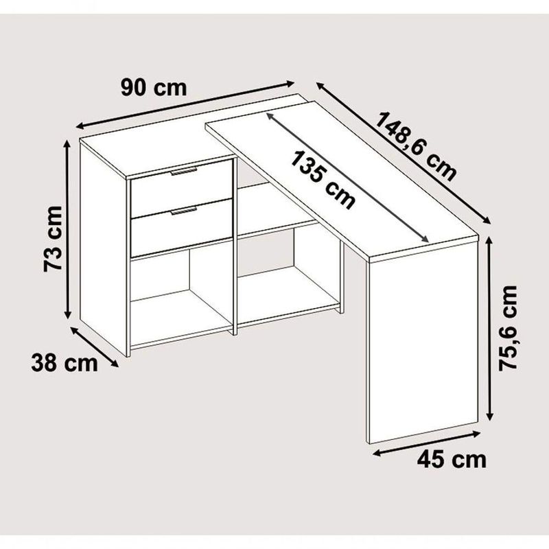 Mesa Para Computador Office Nt 2060 Nogal - NotávelIdeal para a realização das atividades do trabalho e para estudos, a Mesa Office NT 2060 - Notável é perfeita para acomodar os acessórios do seu dia-a-adia, possui 2 gavetas e três nichos. Além de poder ser montada no formato L, os nichos e gaveteiros também podem ser montados do lado direito e esquerdo.Dimensões do Produto montado:Altura: 76/73 cmLargura: 148/200 cmProfundidade: 45/38 cmObservações:- Gavetas com corrediças metálicas;- Puxador de plástico;- 3 Nichos;- Pintura Ultravioleta com acabamento amadeirado.