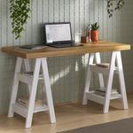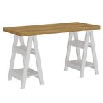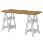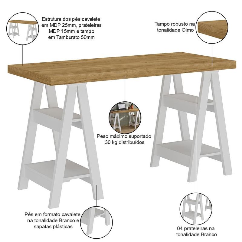 Transforme seu home office, escritório ou cantinho de estudos com a Mesa Escrivaninha Art, da Lyam Decor. Com tampo resistente em Tamburato 50mm, essa mesa para escritório oferece durabilidade e sofisticação, enquanto os pés em formato cavalete trazem um toque moderno e único ao ambiente. Além de um design que impressiona, essa escrivaninha também conta com 04 prateleiras integradas, perfeitas para organizar itens decorativos, livros, acessórios de trabalho ou o que sua criatividade mandar. Versátil e charmosa, ela se adapta a qualquer estilo, do rústico ao contemporâneo. Então, se você busca móveis de escritório com qualidade e estilo, a Mesa Escrivaninha Art é a escolha certa para um espaço organizado e inspirador. Pronta para entregar personalidade e praticidade ao seu dia a dia! Afinal, com os atributos de design moderno, tampo super-resistente e organização inteligente, você terá versatilidade garantida. Adicione ao seu carrinho e renove o seu espaço com a Mesa Art - a expressão de funcionalidade e beleza. Dimensões do produto (L x A x P) 135 x 75 x 60 cm Medidas Internas Espaço livre entre os pés: 62,8 cm Características: Estrutura dos pés cavalete em MDP 25mm, prateleiras MDP 15mm e tampo em Tamburato 50mm. Peças na tonalidade Olmo e Branco. 04 prateleiras funcionais para organização de diversos itens. Pés com design moderno, formato cavalete. Tampo robusto, para maior resistência e durabilidade. Acompanha sapatas plásticas para evitar contato direto com a superfície. Peso máximo suportado 30 kg distribuídos. - A limpeza deve ser feita com pano levemente umedecido em água limpa, sem esfregar, não utilizar produtos abrasivos, desengordurantes, álcool ou solvente. Observações importantes: - Produto para uso residencial em ambiente interno, não devendo ficar exposto diretamente ao sol, calor e umidade excessivos. - Pode haver alguma diferença de tonalidade entre a imagem e o produto real, por conta do tratamento de imagens e a calibração de cores do seu monitor. - As imagens são meramente ilustrativas, não acompanham objetos de decoração e eletrônicos. - Ao receber a mercadoria, o cliente deve verificar as condições da embalagem, caso haja alguma avaria não assine o comprovante de recebimento. - Montagem, desmontagem e outras instalações serão de responsabilidade do cliente. Não nos responsabilizamos, no ato da entrega, por subir escadas/elevadores ou pelo transporte por guincho em apartamentos. Eventuais despesas são de responsabilidade do comprador. - Confira as dimensões do produto e certifique-se de que passará normalmente por supostos elevadores, portas, escadas e/ou corredores de sua residência.