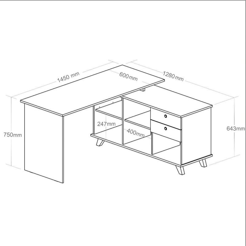 A Mesa Para Escritório Gold é opção ideal para você que está procurando espaço! Suas prateleiras são perfeitas para acomodar materiais do dia a dia, com ajuda de duas gavetas o ambiente office fica muito mais organizado. Versátil, pode ser montada do lado esquerdo ou direito. Pode ser utilizada também em home office, ou como bancada de estudos pelo amplo espaço superior que oferece! Design clássico e funcional aliado a organização, você terá muito mais produtividade com a Mesa Escrivaninha Gold. Dimensões do produto (L x A x P) 145 e 128 x 75 x 60 e 45 cm Características: Estrutura em MDP. Pés com feltro adesivo para proteção do piso. Montagem para o lado esquerdo ou direito. Possui 2 gavetas com corrediças metálicas. Possui 2 prateleiras. Pés de madeira ângulados. Peso do produto montado: 49 kg Recomendações de limpeza: Limpeza com pano levemente umedecido. Observações importantes: - A montagem será de responsabilidade do comprador; - Responsabilizamo-nos pela entrega em todo território nacional, até onde as rodovias alcançam, entregas fluviais ou aéreas devem ser cotadas a parte; - As imagens são ilustrativas, não acompanham objetos de decoração e eletrônicos; - Não nos responsabilizamos, no ato da entrega, por subir escadas/elevadores ou transporte por guincho em apartamentos. - Eventuais despesas são de responsabilidade do comprador; - Confira as dimensões do produto e certifique-se de que passará normalmente por supostos elevadores, portas, escadas e/ou corredores de sua residência;
