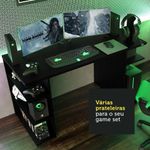 Mesa Para Gamer Madesa - PretoPara deixar sua gameplay ainda melhor, invista em uma mesa gamer que proporciona muito conforto, espaço de sobra e um design moderno.A mesa tem lugar pra organizar tudo, não importa se você joga no ou no videogame. O tampo é reforçado e tem espaço para teclado, monitor, mouse, caixas de som e o que mais você preferir.Na parte inferior são várias prateleiras, perfeitas para CPU, jogos, controles e o console.Para completar, o móvel é versátil e pode ser utilizado como escrivaninha ou estação de trabalho home office.O acabamento preto é feito em Pintura Poliéster ecológica com 7 camadas de proteção.Medidas totais:- 75 Cm de altura- 136 Cm de largura- 60 Cm de profundidadeItens inclusos:- Uma (1) mesa para gamerCódigo do produto: XA94098NObs.:- Imagens meramente ilustrativas- A Madesa não disponibiliza serviço de montagem- O produto acompanha ferragens e manual com todos os passos para a instalação da mesa1 O produto é ou ?R.: Todos os produtos da Madesa são novos, enviados da nossa fábrica diretamente para as casas de nossos clientes.2 O produto vem montado? Se não, vocês realizam a montagem?R.: A Madesa não disponibiliza serviço de montagem. Todos os produtos seguem com manual de instalação e as ferragens necessárias. Alguns produtos possuem vídeo explicando o passo a passo da montagem.3 Vocês possuem física? Posso retirar meu produto em mãos?R.: Não possuímos física, apenas virtual. Confira as opções de ao colocar o seu CEP.4 &Ndash; Qual é o valor do ? Posso pagar separadamente?R.: O valor do é calculado com base no peso e volume do produto, e no CEP de destino. Você pode calcular o valor e prazo de no simulador.5 A Madesa em ? Como é feita a ?R.: Sim, entregamos no inteiro através de transportadoras parceiras.6 O produto acompanha ?R.: Sim, todos os produtos são entregues com suas respectivas .7 Os produtos possuem garantia?R.: Sim. A Madesa oferece 3 meses de garantia para defeitos de fabricação. Garantia: 3 Meses Cor: PretoDimensões - Altura: 75 CmDimensões - Largura: 136 CmDimensões - Profundidade: 60 CmProduto: Mesa Para EscritórioMaterial: MdpMarca: MadesaPeso Aproximado: 34 KgTonalidade: PretoTipo: GamerCômodo Indicado: Home OfficeRbn: Casa/móveis/móveis Para Escritório em CasaMaterial Para Filtro: MdpEstado de Origem: RsConteúdo da Embalagem: N/iInstruções/cuidados: N/i