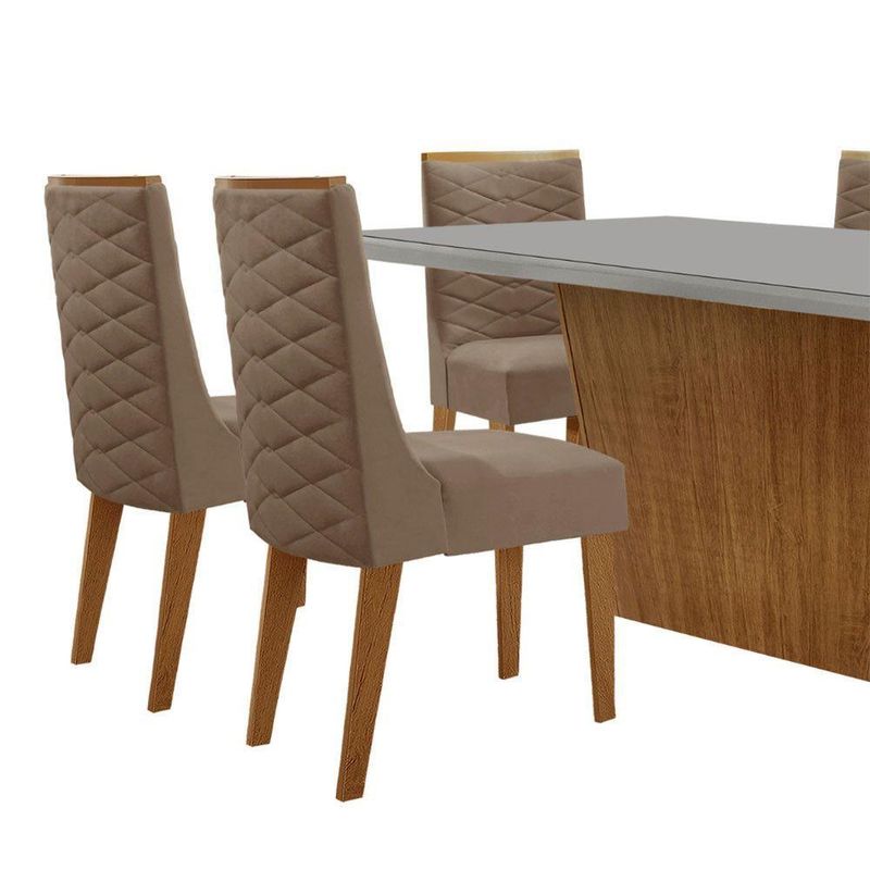 Mesa Sala De Jantar Aida 180cm E 6 Cadeiras Safira Moderna Turim 07/off White/imbuiaMesa para Sala de Jantar Aida 180cm MDF Canto Copo com Vidro e 6 Cadeiras SafiraCom design sofisticado e contemporaneo, a Sala de Jantar Aida com as Cadeiras Safira e a escolha ideal para transformar o ambiente que estiver. As cadeiras, com assentos e encostos estofados, sao embelezadas com bordados tanto na frente quanto atras do encosto, adicionando um charme especial e refinado. A Mesa complementa o conjunto com sua base robusta e linhas retas, oferecendo um acabamento impecavel que destaca a elegancia do espaco. Juntas, essas pecas transformam sua sala de jantar em um ambiente de beleza e estilo inigualaveis! Caracteristicas: Marca: Moderna Mobilia Mesa e Cadeiras Tampo Canto Copo Material da Estrutura: 100 MDF Tipo de Acabamento: Pintura UV Possui Vidro: Sim Dimensoes da Mesa: Altura: 80cm Largura: 180cm Profundidade: 90cm Dimensoes das Cadeiras: Altura: 99cm Largura: 45cm Profundidade: 60cm Garantia do Fornecedor: 3 meses Informacoes Importantes: As tonalidades das cores podem sofrer alteracao de acordo com a configuracao de cada monitor. Os objetos que ambientam as fotos nao acompanham o produto. Nao disponibilizamos a montagem do produto. Nao nos responsabilizamos por danos no produto causado por montagem. Verifique as dimensoes do produto e certifique-se que o percurso que ele fara ate o local de uso permite sua passagem. Para mais informacoes confira as politicas de entrega do site. Favor verificar o produto no ato da entrega e em caso de problemas decorrentes no transporte (arranhados, quebra, batida, amassados) deve-se efetuar a ressalva na nota fiscal para conhecimento da transportadora e comunicar imediatamente a loja. Moderna Mobilia reserva o direito de alterar as especificacoes tecnicas sem previo aviso. As medidas contidas no site podem sofrer variacoes de acordo com a montagem, tipo de costura etc.