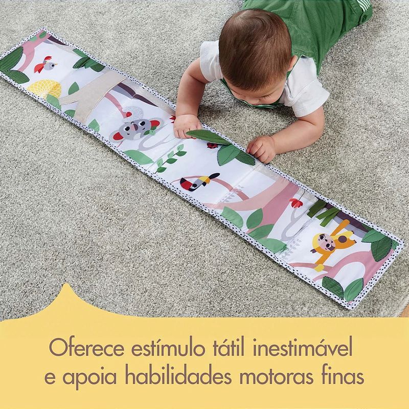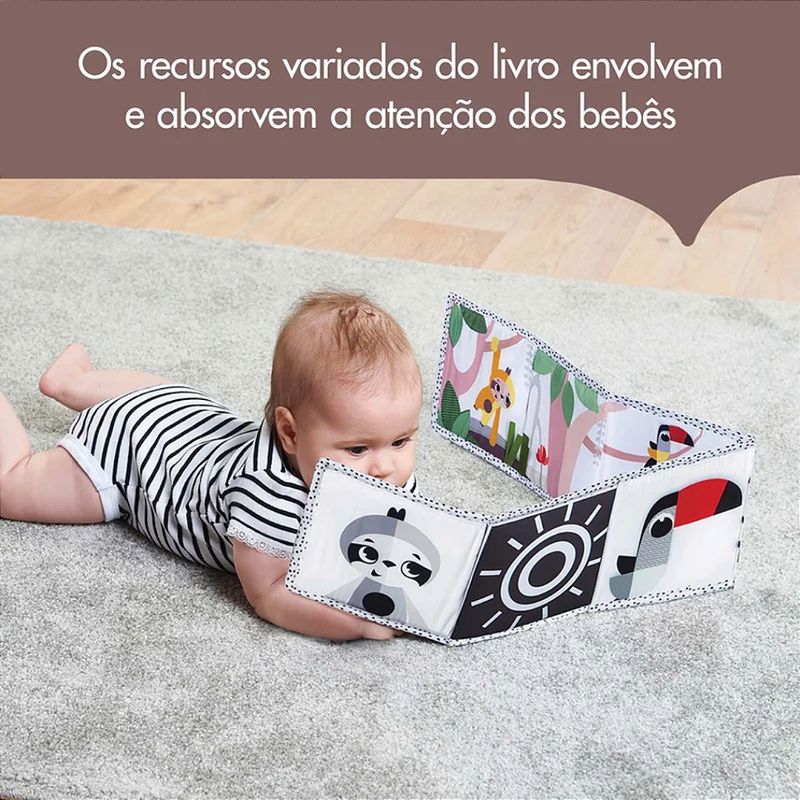 Meu Primeiro Livrinho Tiny Love Boho Chic O Meu primeiro livrinho Boho Chic, dupla-face, é projetado para apoiar o desenvolvimento do bebê e prolongar o tempo de tummy-time com atividades envolventes. O Meu primeiro livrinho Boho Chic, dupla-face, é projetado para apoiar o desenvolvimento do bebê e prolongar o tempo de tummy-time com atividades envolventes. De um lado, temos o design contrastante em preto e branco que estimula o desenvolvimento visual dos bebês mais novos, e do outro lado, os desenhos em cores suaves e os personagens encantadores cativam os bebês maiores. Fácil de dobrar e levar para qualquer lugar, este livro proporciona diversão e desenvolvimento onde quer que você vá! Descubra tudo isso e muito mais com nossos especialistas. Nossos produtos são criados para apoiar o crescimento e o desenvolvimento dos bebês, sempre baseados em estudos científicos. 0-3+ meses: OS SENTIDOS - ESTIMULAÇÃO VISUAL O lado preto e branco oferece ao bebê estímulo visual essencial desde o primeiro dia. Coloque o livro a uma distância conveniente do bebê (20-30 cm) e deixe-o tentar focar seu olhar nas formas contrastantes e no espelho, promovendo o desenvolvimento visual. 3-6 meses: HABILIDADES MOTORAS GROSSAS - TUMMY-TIME Ambos os lados do livro envolvem e estimulam o bebê em diferentes estágios de desenvolvimento, tornando o tummy-time mais divertido e prolongado. Coloque o bebê de bruços com o livro ao alcance e deixe-o explorar as texturas e formas com os olhos e as mãos, incentivando o desenvolvimento motor de forma lúdica. 5+ meses: COGNIÇÃO - PERMANÊNCIA DO OBJETO Brincar de esconde-esconde é uma excelente maneira de ajudar o bebê a entender a permanência dos objetos, percebendo que as coisas continuam existindo mesmo quando não estão visíveis. Este conceito é fundamental para o desenvolvimento cognitivo. Características: Design contrastante em preto e branco de um lado e cores suaves da linha Boho-Chic do outro Projetado para impulsionar o desenvolvimento visual de bebês menores 7 atividades divertidas que apresentam texturas lúdicas, formas e personagens contrastantes Fácil de dobrar e levar para onde quer que vá Adapta-se facilmente à maioria dos carrinhos e outros equipamentos para bebês Estímulos com espelho, fitas de cetim, folha esconde-esconde com textura e barulho, tronco de árvore macio O Meu primeiro livrinho Boho Chic, dupla-face, é projetado para apoiar o desenvolvimento do bebê e prolongar o tempo de tummy-time com atividades envolventes. O Meu primeiro livrinho Boho Chic, dupla-face, é projetado para apoiar o desenvolvimento do bebê e prolongar o tempo de tummy-time com atividades envolventes. De um lado, temos o design contrastante em preto e branco que estimula o desenvolvimento visual dos bebês mais novos, e do outro lado, os desenhos em cores suaves e os personagens encantadores cativam os bebês maiores. Fácil de dobrar e levar para qualquer lugar, este livro proporciona diversão e desenvolvimento onde quer que você vá! Descubra tudo isso e muito mais com nossos especialistas. Nossos produtos são criados para apoiar o crescimento e o desenvolvimento dos bebês, sempre baseados em estudos científicos. 0-3+ meses: OS SENTIDOS - ESTIMULAÇÃO VISUAL O lado preto e branco oferece ao bebê estímulo visual essencial desde o primeiro dia. Coloque o livro a uma distância conveniente do bebê (20-30 cm) e deixe-o tentar focar seu olhar nas formas contrastantes e no espelho, promovendo o desenvolvimento visual. 3-6 meses: HABILIDADES MOTORAS GROSSAS - TUMMY-TIME Ambos os lados do livro envolvem e estimulam o bebê em diferentes estágios de desenvolvimento, tornando o tummy-time mais divertido e prolongado. Coloque o bebê de bruços com o livro ao alcance e deixe-o explorar as texturas e formas com os olhos e as mãos, incentivando o desenvolvimento motor de forma lúdica. 5+ meses: COGNIÇÃO - PERMANÊNCIA DO OBJETO Brincar de esconde-esconde é uma excelente maneira de ajudar o bebê a entender a permanência dos objetos, percebendo que as coisas continuam existindo mesmo quando não estão visíveis. Este conceito é fundamental para o desenvolvimento cognitivo. Características: Design contrastante em preto e branco de um lado e cores suaves da linha Boho-Chic do outro Projetado para impulsionar o desenvolvimento visual de bebês menores 7 atividades divertidas que apresentam texturas lúdicas, formas e personagens contrastantes Fácil de dobrar e levar para onde quer que vá Adapta-se facilmente à maioria dos carrinhos e outros equipamentos para bebês - Certificado: CE-BRI/IQB 006367 55944/23-001. Especificações: - Dimensões Externa do Produto (A x L x P | cm) Aberto: 15 x 80 x 1 | Fechado: 15 x 15 x 2,5. - Peso do Produto: 0,280 - Material/ Composição: Poliéster.