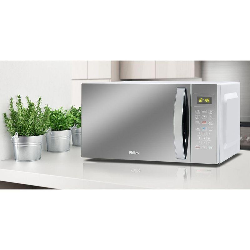 Micro-ondas 25L Philco Espelhado Limpa Fácil 1100W PMO28E 220VO Micro-ondas PMO28E Philco possui 6 receitas pré-programadas: brigadeiro, pipoca, lasanha, pizza, bolo de caneca e menu fit, para facilitar ainda mais seu dia a dia. Conta também com função tira odor, que retira o cheiro dos alimentos, mantendo a higiene durante um preparo e outro; função manter aquecido, que mantém os alimentos na temperatura ideal para consumo; e função timer, que desliga automaticamente o aparelho após o tempo selecionado. Para ainda mais praticidade para sua rotina, o Micro-ondas PMO28E descongela de maneira prática carnes, que no geral levam mais tempo para descongelar, por meio do Descongela Fácil. Além disso, é possível adicionar mais tempo durante o preparo com a função +30 segundos. Muita facilidade em um único clique. O Micro-ondas Philco 25L Limpa Fácil PMO28E 1100W é descomplicado até na hora da limpeza, pois conta com pintura Limpa Fácil, que deixa o momento de limpar seu Micro-ondas ainda mais simples e rápido. Tenha mais praticidade no seu dia a dia, conte com o Micro-ondas Philco 25L Limpa Fácil PMO28E 1100W! Principais Características:- Capacidade 25L- Prato com diâmetro de 285mm- Teclas fáceis: FIT e Manter Aquecido- Opções Descongelar por Tempo ou Descongelar por Peso- Função Potência- Função Relógio- Função Display / Sound- Função Tira odor- 1000W de potência- Classe "A" em eficiência energética.Observação: Somente faturamos para o nosso consumidor final, ou seja, não faturamos pedidos para CNPJ por este portal de vendas.Especificações Técnicas:Marca: PhilcoCapacidade (L): 25 Modelo: PMO28E Estado: Novo Espelhado: Sim De embutir: Não Potência (W): 1100W Altura do produto: 28,8 cmLargura do produto: 47,6 cmComprimento do produto: 38,6 cmPeso do produto: 11,22 kgAltura com embalagem: 33,6 cmLargura com embalagem: 53,8 cmComprimento com embalagem: 42,5 cmPeso com embalagem: 11,79 kgGarantia (Dias): 360