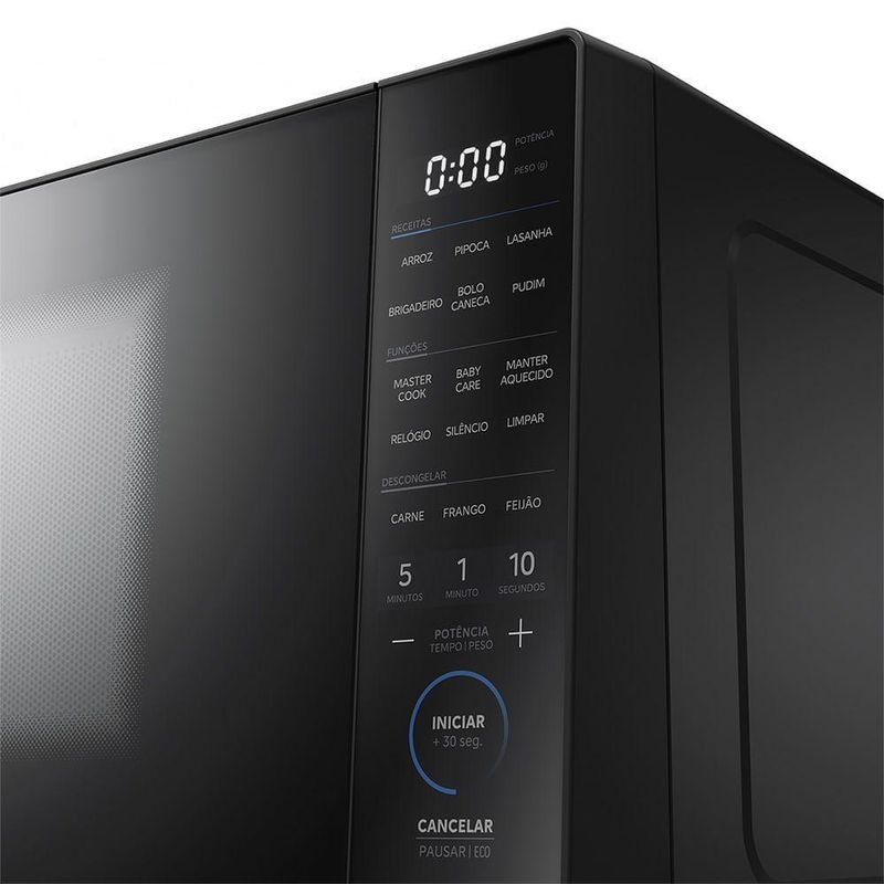 Micro-Ondas 27L Preto MasterCook Midea MHP27P1 110VO Micro-ondas 27L MasterCook Midea é a solução perfeita para quem busca eficiência, versatilidade e praticidade. Sua Função MasterCook oferece 6 funções para facilitar sua rotina: desidratar, cozinhar, assar, ao vapor, derreter e fermentar. Além disso, seu interior conta com o exclusivo revestimento MasterClean, que por meio de uma cavidade escura, evita o acúmulo de gordura e torna a limpeza do micro-ondas muito mais fácil e rápida. Com design moderno, possui puxador embutido com acabamento discreto que une estilo e funcionalidade. Oferece 6 receitas pré-programadas, como pipoca, arroz, brigadeiro, bolo de caneca, lasanha e pudim com apenas um toque e 10 níveis de potência para ajustar conforme o tipo de alimento e o resultado desejado. A Tecnologia Smart Plate garante que o prato giratório retorne automaticamente as alças de xícaras e canecas à posição inicial, tornando a retirada dos itens muito mais prática e segura. O aparelho ainda oferece a função descongelar por tempo para carne, frango e feijão, que garante eficiência sem riscos de cozimento parcial, a função manter aquecido, que preserva a temperatura por até 5 minutos em potência baixa e a função limpa fácil, que derrete a gordura interna e simplifica a higienização. Ideal para famílias ou quem busca mais espaço interno, o Micro-ondas 27L MasterCook Midea une tecnologia, praticidade e design para transformar sua rotina na cozinha. Especificações Técnicas:Marca: MideaCor: PretoCapacidade (litros): 27 L Produto conectado: NãoMaterial interno: Metal Inteligência Artificial: NãoMaterial externo: Metal, Plástico e Vidro Cor interna: Cinza EscuroAbertura: Horizontal Display digital: SimDisplay Cor: Branco Puxador: NãoDescongelamento por peso: Sim Níveis de Potência: 10Grill: Não Sistema toque rápido - Aquecimento em 1 toque: Sim (+30seg)Menu Descongelar: Descongelar Carne, Feijão e FrangoReceitas Pré-Programadas: Arroz, Brigadeiro, PipocaFunções: MasterCook, BabyCare, Manter Aquecido, Relógio, Silêncio, Limpar, Potência Prato giratório inteligente: SimRelógio: SimTemporizador máximo: 99 minutos/ 99 segundosDesodorizador: Sim Frequência (Hz): 60HzDiâmetro do prato (mm): 28,8 cm Potência nominal (W): 127v 1270 WFreqüência de operação do microondas (Hz): 60HzPotência de micro-ondas (W) 127v 1270 WClasse de Eficiência Energética: A Eficiência Energética (%) 127v: A Altura: 29,2 cmLargura: 48,5 cmProfundidade: 38,0 cmPeso: 12,8 kg Garantia do Produto: 12 meses