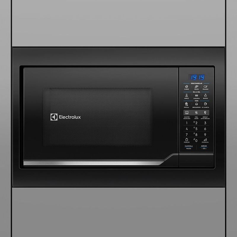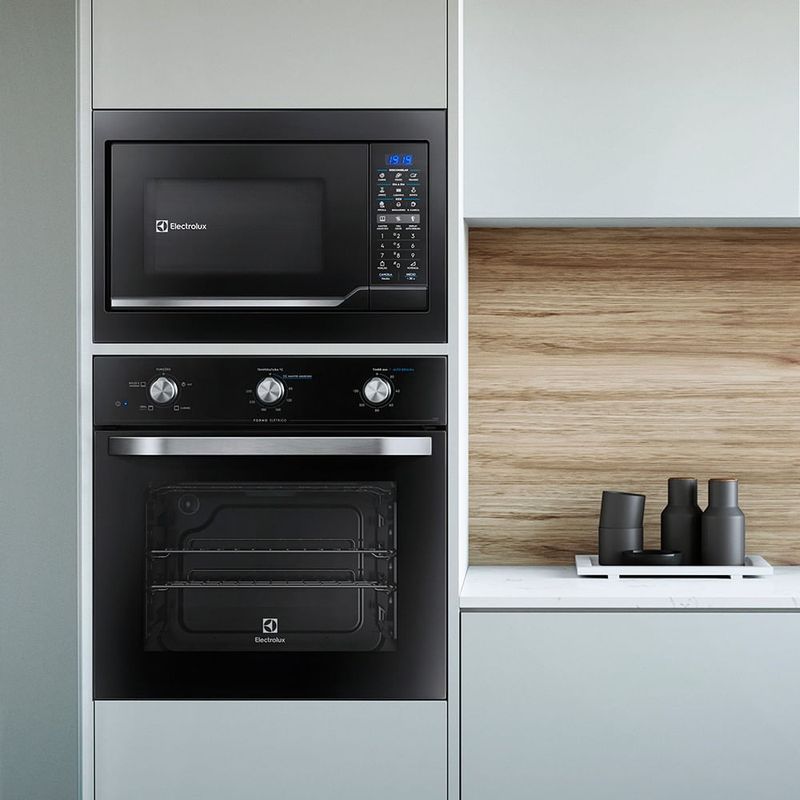 O micro-ondas de embutir de 34 litros (ME3EP) apresenta design moderno e funcional, oferecendo mais facilidade para a sua rotina e sofisticação para a sua cozinha. Com alta potência e eficiência energética, você prepara as suas receitas em menos tempo e ainda conta com painel digital fácil de manusear e recursos que facilitam a limpeza, como a função tira odor. Conheça mais sobre micro-ondas de embutir 34 litros Tecnologias do micro-ondas de embutir 34 litros O micro-ondas de embutir 34 litros Electrolux é equipado com tecnologias e recursos que promovem mais facilidade no preparo das suas refeições. Alta potência: com o micro-ondas de 34 litros, você economiza tempo no preparo de suas receitas graças à potência de 1400W; Modelo econômico: maior eficiência no consumo diário de energia por sua classificação energética A no selo Procel, do Inmetro; Amplo espaço interno: excelente capacidade interna de 34 litros, permitindo acondicionar travessas e pratos maiores, para todos os tipos de receita; Painel digital: painel digital com display azul auxilia na visualização, sendo muito fácil de manusear; Função Tira Odor: remove muito facilmente os odores do interior do micro-ondas embutido, permitindo que se cozinhe qualquer receita sem preocupação com o cheiro forte no ambiente. Principais perguntas sobre micro-ondas de embutir 34 litros Qual tamanho de micro-ondas é bom? A escolha do tamanho do micro-ondas deve considerar as suas necessidades e hábitos de uso. Esse modelo de micro-ondas 34 litros oferece amplo espaço interno, o que permite acomodar pratos e travessas grandes. Essa característica é útil para quem costuma preparar receitas maiores, facilitando a rotina na cozinha. Qual a diferença do micro-ondas de embutir para o normal? A diferença entre os dois produtos está na forma de instalação. O micro-ondas tradicional, chamado também de micro-ondas de bancada, pode ser colocado em qualquer superfície plana e adequada ao eletrodoméstico, como uma mesa ou um balcão. Já o micro-ondas embutido é instalado em um móvel planejado, como um nicho, otimizando o espaço e oferecendo um design moderno à cozinha. Qual a melhor potência de micro-ondas? Quanto maior a potência do micro-ondas, mais rápido é o preparo das receitas. Por isso, se você costuma fazer pratos mais elaborados ou usa o produto com frequência, micro-ondas com potência acima de 1000W são os mais indicados. Um exemplo é o micro-ondas de embutir 34 litros Electrolux, que oferece 1400W de potência. O que avaliar antes de comprar um micro-ondas? Ao escolher um novo micro-ondas para a sua casa, é importante considerar alguns fatores: Capacidade: com base no tamanho da sua família e nos seus hábitos de uso, escolha uma capacidade que atenda às suas necessidades; Potência: quanto mais potente o micro-ondas, mais rápido é o preparo das receitas. Por isso, se você faz receitas mais elaboradas ou usa o produto com frequência, é interessante optar por um modelo com potência acima de 1000W; Classificação energética: produtos classificados na categoria A do Selo Procel oferecem um consumo de energia mais eficiente; Tecnologias: verifique a presença de recursos que facilitam a rotina, como o painel digital, o menu de receitas e a função tira odor; Design: modelos como o micro-ondas de embutir 34 litros otimizam o espaço na cozinha, além de oferecer uma estética moderna e sofisticada.