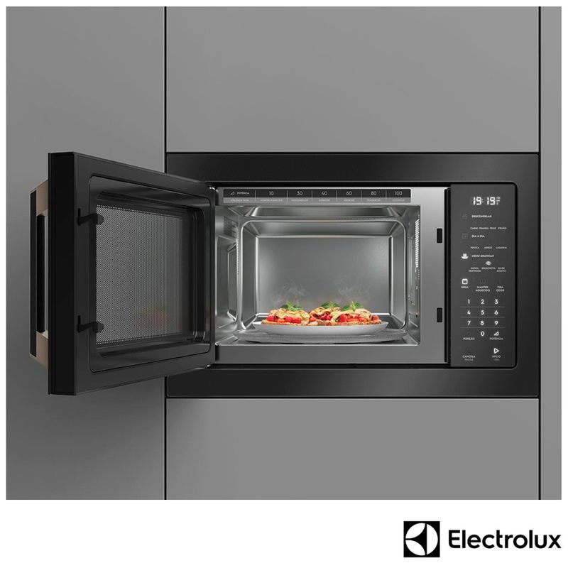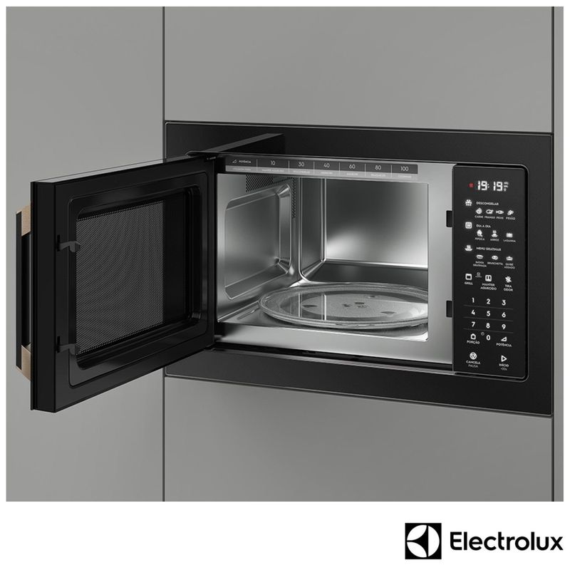 A linha Pro Series Electrolux segue as tendências mais sofisticadas de design, com estilo e muito charme. É uma coleção de produtos que investe em elegância em cada detalhe, como por exemplo, no uso de Vidro Preto com detalhes na cor Light Gold e painéis touch em led branco, que atraem a atenção pelo bom gosto de sua concepção. Se você deseja opções que contribuam para um bom projeto de design de interiores, a linha Pro Series representa o máximo em estilo no mercado atual. O Micro-Ondas Electrolux, com um toque de sofisticação em seu painel glass touch com vidro led azul, oferece ainda um grill que doura e gratina seus alimentos e mantém o aspecto dos pratos muito mais atraente, como recém-saído das cozinhas dos grandes chefs. Esse Micro-Ondas 34L possui a função tira odor, que elimina justamente a interferência de odores que ficam retidos no modelo e interferem na cozinha. Esse benefício é proporcionado por um sistema que permite recircular o ar em seu interior. Suas refeições sempre estarão com a temperatura ideal, pois a função manter aquecido deixa seus alimentos na temperatura adequada para servir a qualquer momento. O Micro-Ondas Electrolux oferece diversas funções como descongelar ou gratinar, facilita o preparo daquelas receitas deliciosas, para deixar seu cotidiano muito mais saboroso. Destaques Grill Doura e gratina. Acabamento perfeito de receitas Painel Glass Touch Facilidade de uso e limpeza. Sofisticação Timer Auxílio para atingir o melhor resultado, com controle, sem queimar as receitas Função tira odor Função para retirar odores que ficam no MWO ao final do uso Autolimpante Superfície que se limpa ao passar de um pano Características Tipo: Micro-ondas de Embutir Função Grill Painel Eletrônico Pratos Pré-programados Timer Especificações Técnicas Modelo: MV43T Acabamento: Aço inoxidável Cor: Preto Capacidade Total: 34 Litros Capacidade Útil: 34 Litros Potência: 1300 W Nível de Potência: 10 Porta Espelhada Prato Giratório Luz Interna Relógio Voltagem: 110V ou 220V (não é bivolt) EAN: 7909569001707 (110V) / 1909569001714 (220V) Garantia: 12 meses Dimensões e Peso Dimensões do produto sem embalagem (AxLxP): 388x595x440 mm Dimensões do produto com embalagem (AxLxP): 466x653x550 mm Dimensões do Nicho (AxLxP): 430x610x550 mm Peso do produto sem embalagem: 20 kg Peso do produto com embalagem: 22 kg Itens Inclusos 01 Microondas Manual de instruções Serviço de Instalação e Orientação de Uso Para sua comodidade e segurança, a Fast Shop dispõe do serviço de Instalação e Orientação de Uso*. Agendamos o serviço para você, executamos a instalação com equipes próprias especializadas e autorizadas pelo fabricante, ensinamos como utilizar os produtos da melhor forma e temos uma área de qualidade para acompanhar e garantir que tudo dê certo. É rápido e fácil. Você pode contratar o serviço com o nosso canal Blá pelo WhatsApp no número (11) 3232-2949 ou em uma de nossas lojas. Consulte os valores e regiões atendidas.
