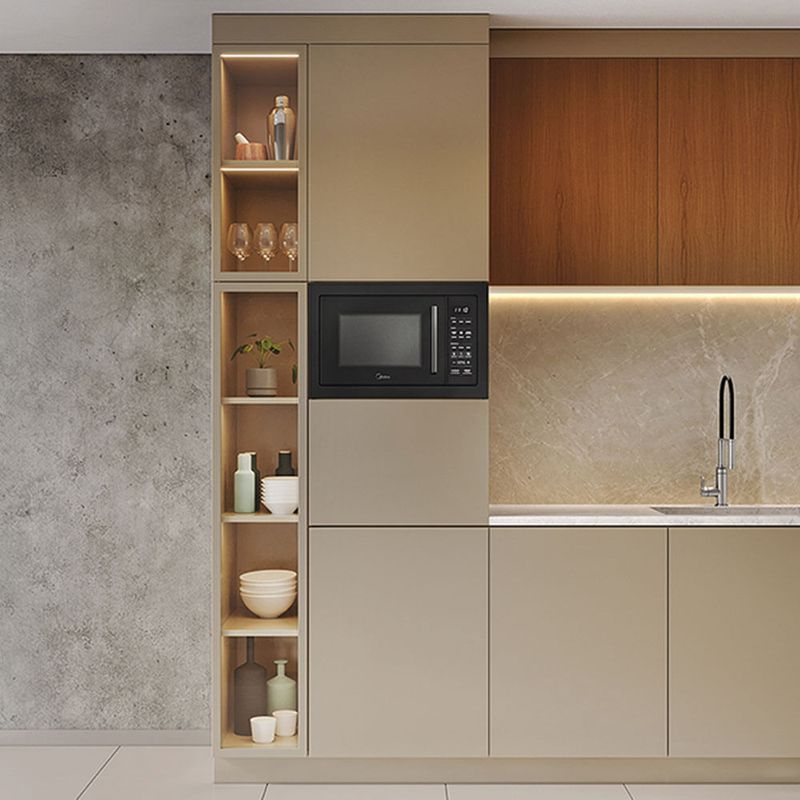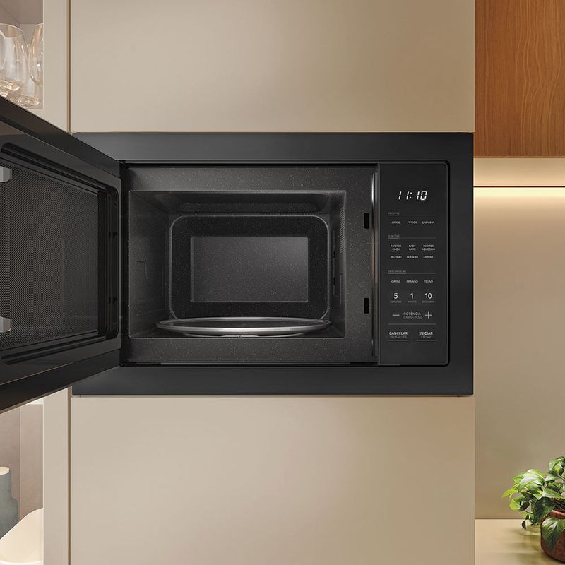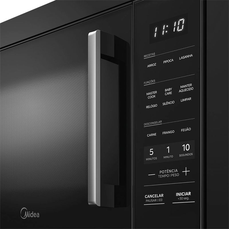 O Micro-ondas de Embutir 35L Touch Preto Midea é a escolha ideal para quem busca tecnologia, praticidade e design sofisticado na cozinha. Seu painel touch entrega modernidade e facilidade no uso, oferecendo um comando rápido, intuitivo e elegante. Com acabamento premium e visual funcional, ele se integra perfeitamente ao ambiente, garantindo desempenho superior com muito estilo.Seu interior conta com o exclusivo MasterClean, que por meio de uma cavidade escura, evita o acúmulo de gordura e facilita a limpeza, garantindo mais praticidade no dia a dia.Outro destaque é a Tecnologia Smart Plate, que torna o uso ainda mais simples: o prato inteligente reposiciona automaticamente a alça de xícaras e canecas, facilitando o manuseio com mais conforto e segurança. CaracterísticasTipo: Micro-ondas de embutirPainel Eletrônico: TouchTimerFunção AutolimpezaTecnologia Smart Plate Especificações TécnicasModelo: MGB35TCor: PretoCapacidade Total: 35 litrosCapacidade Útil: 20 litrosPotência: 1450WNível de Potência: 10Consumo de Energia: 55,3 kWh/mês (110V) / 57,9 kWh/mês (220V)Selo Procel (Eficiência Energética): AAcabamento Interno: MasterCleanLuz InternaVoltagem: 110V / 220V (não é bivolt)EAN: 7898945166881 (110V) / 7898945166898 (220V)Garantia: 12 meses Dimensões e PesoDimensões do produto sem embalagem (AxLxP): 388x594x469 mmDimensões do produto com embalagem (AxLxP): 447x645x479 mmPeso do produto sem embalagem: 16,40 Kg Peso do produto com embalagem: 17,45 Kg Itens Inclusos01 Micro-ondas Serviço de Instalação e Orientação de UsoPara sua comodidade e segurança, a Fast Shop dispõe do serviço de Instalação e Orientação de Uso*. Agendamos o serviço para você, executamos a instalação com equipes próprias especializadas e autorizadas pelo fabricante, ensinamos como utilizar os produtos da melhor forma e temos uma área de qualidade para acompanhar e garantir que tudo dê certo. É rápido e fácil. Você pode contratar o serviço através do nosso canal Blá pelo WhatsApp no número (11) 3232-2949 ou em uma de nossas lojas. Consulte os valores e regiões atendidas.* Verifique com nossos vendedores se a Fast Shop realiza a instalação desse produto.