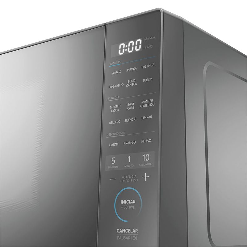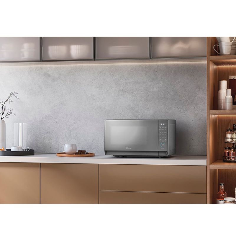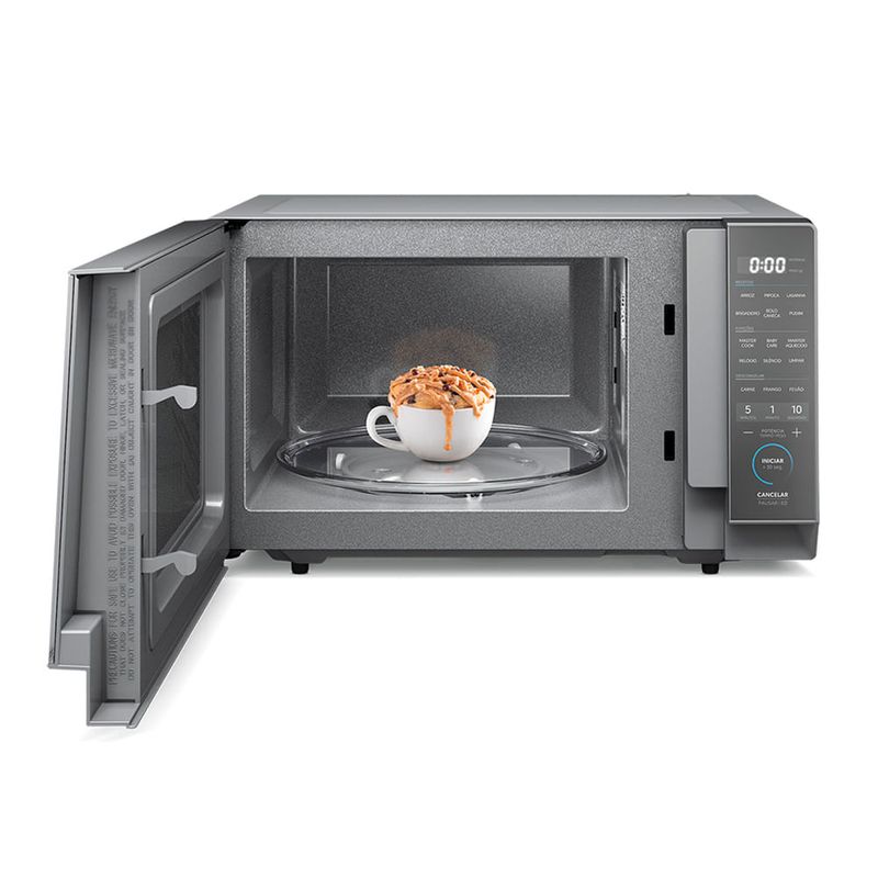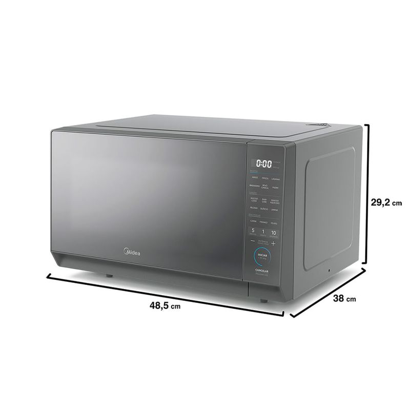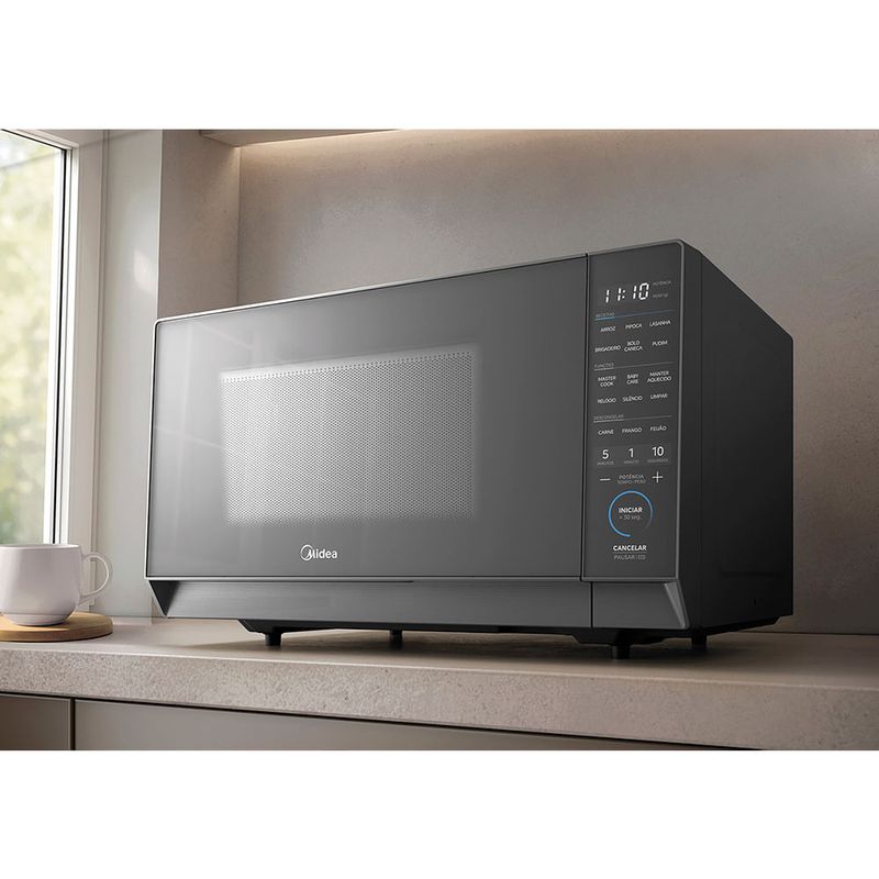 Função MasterCook Muito além de aquecer, são 6 funções especiais que facilitam o dia a dia na cozinha: Derreter: ideal para ingredientes como chocolate, manteiga ou queijo. A função aplica a potência certa para evitar queimar ou ressecar os alimentos durante o derretimento. Ao Vapor: perfeita para legumes. Mantém os nutrientes e o sabor dos alimentos com um preparo mais saudável. Cozinhar: função voltada para receitas rápidas e completas, como macarrão sem molho, lentilha ou pratos prontos. É possível ajustar tempo e potência conforme o tipo de alimento. Fermentar: indicada para massas e iogurtes. Cria um ambiente com temperatura controlada para acelerar o processo de fermentação de pães. Desidratar: remove a umidade de frutas, vegetais e ervas, transformando-os em snacks naturais e saudáveis, como chips de maçã, tomates secos ou ervas secas. Assar: função que simula o forno convencional, permitindo preparar bolos, tortas e até pequenas porções de massas com praticidade e rapidez. CaracterísticasTipo: MesaPainel TouchPratos Pré-programados: Derreter, Ao Vapor, Cozinhar, Fermentar, Desidratar, AssarTimer Especificações TécnicasModelo: MHP27SCor: PrataCapacidade Total: 27 litrosPotência: 1270W Nível de Potência: 10Consumo de Energia: 60 kWh/mêsPorta EspelhadaVoltagem: 110V ou 220V (não é bivolt)EAN: 7898945167864 (110V) / 7898945167888 (220V)Garantia: 12 meses Dimensões e PesoDimensões do produto sem embalagem (AxLxP): 29,2x48,5x38 mmDimensões do produto com embalagem (AxLxP): 32,4x53,2x43,5 mmPeso do produto sem embalagem: 12,8 kgPeso do produto com embalagem: 13,2 kg Itens Inclusos01 Micro-ondas Midea Mastercook Serviço de Instalação e Orientação de UsoPara sua comodidade e segurança, a Fast Shop dispõe do serviço de Instalação e Orientação de Uso*. Agendamos o serviço para você, executamos a instalação com equipes próprias especializadas e autorizadas pelo fabricante, ensinamos como utilizar os produtos da melhor forma e temos uma área de qualidade para acompanhar e garantir que tudo dê certo. É rápido e fácil. Você pode contratar o serviço através do nosso canal Blá pelo WhatsApp no número (11) 3232-2949 ou em uma de nossas lojas. Consulte os valores e regiões atendidas.* Verifique com nossos vendedores se a Fast Shop realiza a instalação desse produto.