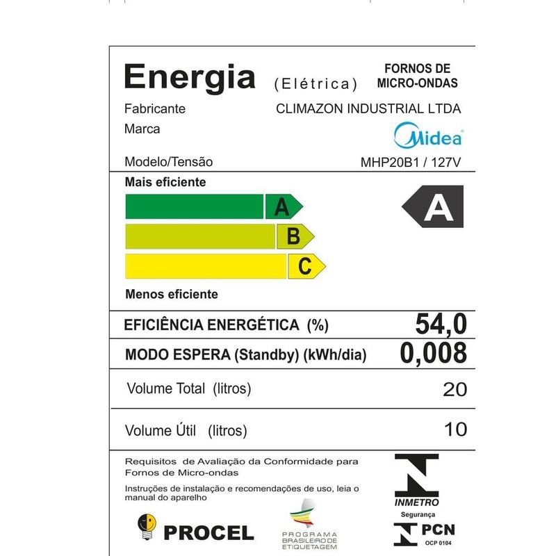 Faça muito mais na cozinha com o Micro-ondas Midea MHP20B MasterCook 20L. Praticidade, inovação e economia de energia, tudo isso reunido em único micro-ondas. Com design compacto e moderno na cor branca, ele possui painel touch screen intuitivo e display digital para fácil operação. Sua função MasterCook amplia as possibilidades na cozinha, permitindo desidratar alimentos, derreter ingredientes, cozinhar no vapor, assar, fermentar massas e iogurtes, e muito mais com apenas um único aparelho.Para garantir agilidade, conta com receitas pré-programadas, menu descongelar, função aquecer e a prática tecla Ligar/+30 segundos. Sua função Limpar reduz odores, enquanto o desodorizador mantém o interior sempre fresco. São 10 níveis de potência e potência máxima de 1050W, com classificação energética A, oferecendo baixo consumo de energia e desempenho. Além disso, conta com função silêncio e função Baby Care para atender diferentes necessidades da família.Capacidade de 20 litrosPrato giratório de 25,5 cmTimer On e AutodescongelamentoDimensões compactas para otimizar espaçoDescubra como o Micro-ondas Midea MasterCook 20L pode transformar sua experiência na cozinha, unindo tecnologia, versatilidade e economia em um só produto.