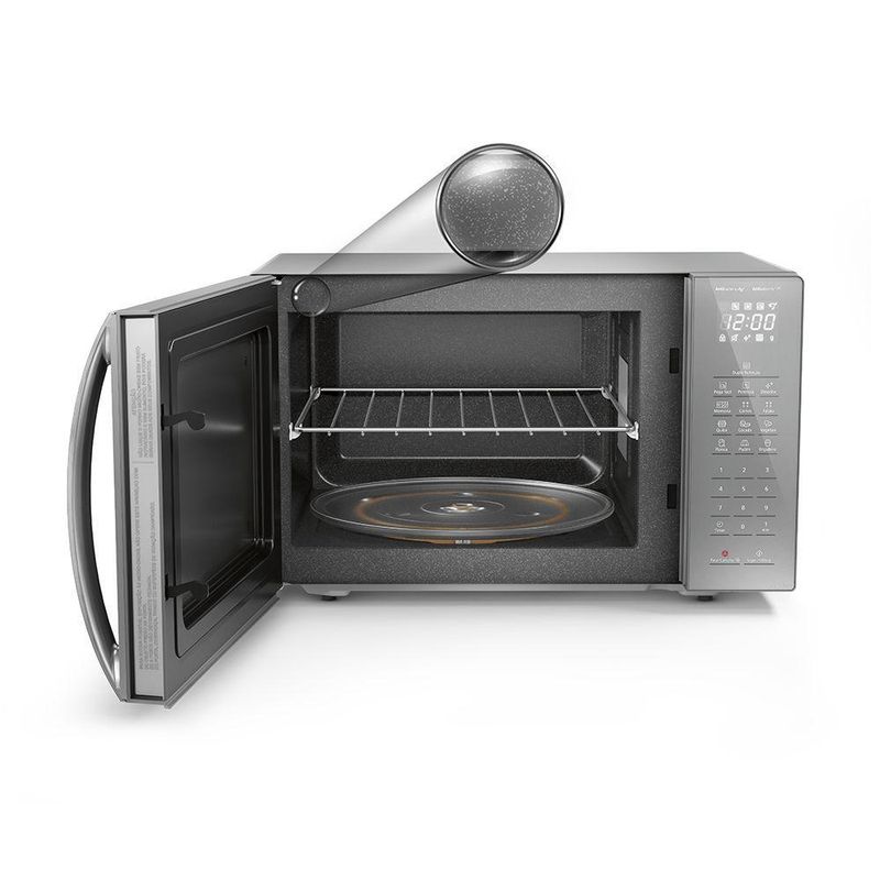 Micro-ondas Panasonic Tecnologia Antibactéria AG 34L Inox - ST67LSRU 110VO micro-ondas Panasonic ST67LSRU é a solução ideal para quem busca eficiência e modernidade na cozinha. Com a tecnologia Antibactéria e recursos práticos como Dupla Refeição e Pega Fácil, ele oferece um desempenho superior e facilidade na limpeza, tornando o preparo de refeições mais rápido e seguro.Recursos:Antibactéria AG: Inibe 99,9% da proliferação de bactérias.Dupla Refeição: Permite aquecer duas porções simultaneamente com grelha removível.Pega Fácil: Facilita a remoção de utensílios quentes.Revestimento Antiaderente: 4x mais fácil de limpar.Autodescongelamento: 2 opções disponíveis.Desodorizador: Elimina odores de receitas anteriores.Funções Adicionais:Relógio: SimTrava de Segurança: SimAdicionar 30 seg.: SimTipo: Micro-ondas com Tecnologia Antibactéria AGCapacidade: 34LCor: InoxPotência de Entrada (Micro-ondas): 900 WNíveis de Potência (Micro-ondas): 10Largura sem Embalagem: 52 cmAltura sem Embalagem: 32,5 cmProfundidade sem Embalagem: 43,2 cmPeso Líquido: 14,8 kgPeso Bruto: 15,7 kgInterior: CinzaPorta: EspelhadaGarantia: 12 meses