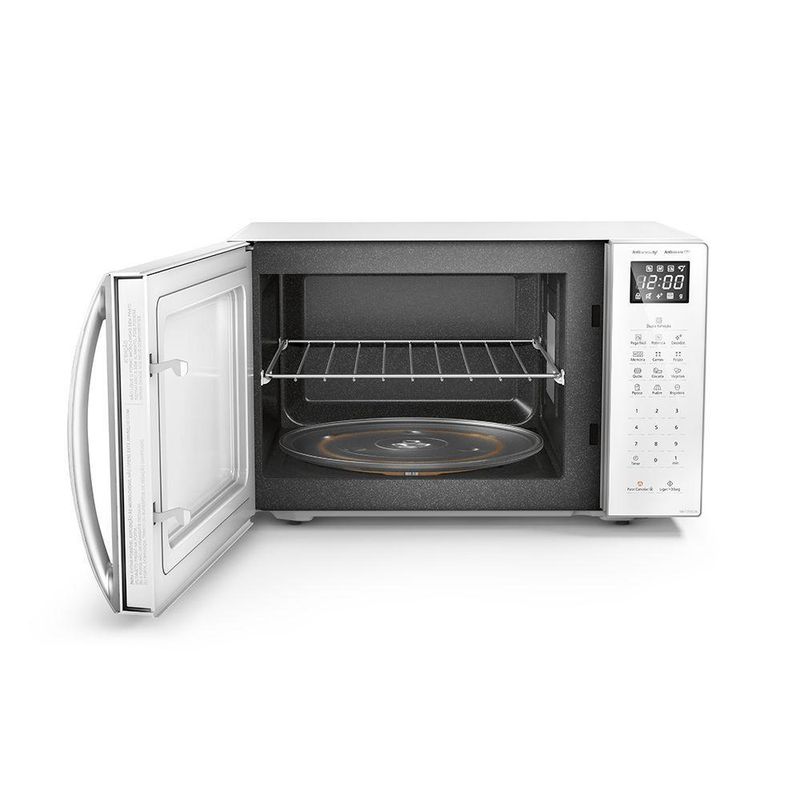 Micro-ondas Panasonic Dupla Refeição 34L Branco - ST65LWRU 220VCom painel, tecnologia antiaderente e espaço para duas refeições, o micro-ondas Panasonic Dupla Refeição 34L Branco - ST65LWRU vai te surpreender. Confira!- Funciona com preparações de até 5 minutos.- Teste realizado com Staphylococcus aureus e Escherichia coli. Testado em laboratório independente creditado.- Testado em laboratório independente creditado considerando os micro-ondas já fabricados pela Panasonic, com revestimento comum. Teste realizado com sujidade de leite e ovo.Benefícios:Antiaderente 4x mais fácil de limparDupla refeiçãoPega fácilTecnologia:Tecnologia Antibacteria AG: Inibe 99,9% da proliferação das bactérias.Potência de Entrada (Micro-ondas): 900 WNíveis de Potência (Micro-ondas): 10Eficiência Energética (%): 54%Nível de Eficiência Energética Inmetro: ACor externa: BrancoCor interna: CinzaDiâmetro do prato (cm): 31,5 cmLitragem: 34 LVolume Útil (litros): 23 LLargura sem Embalagem (Cm): 52 cmAltura sem Embalagem (Cm): 32,5 cmProfundidade sem Embalagem (Cm): 43,2 cmLargura com embalagem (Cm): 56,5 cmAltura com embalagem (Cm): 38,8 cmProfundidade com embalagem (Cm): 45 cmPeso líquido (Kg): 14,8 kgPeso Bruto (Kg): 15,7 kgAutodescongelamento: 2Autorreaquecimento: NãoSelo beneficio 1: Dupla RefeiçãoSelo beneficio 2: Pega FácilSelo beneficio 3: Antibactéria AGFunção Mudo: SimAdicionar 30 Seg.: SimDisplay (cor do LED): BrancoPorta: BrancaDesign sofisticado: Linha moderna com painel.Grelha suporte: SimPotência de Entrada (Convecção): 1450 WGarantia (meses): 12 meses