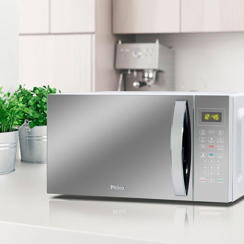 Micro-ondas Philco 28 Litros Limpa Fácil PMO30E 1100W Prata 110VO Micro-ondas Philco PMO30E traz mais praticidade, modernidade e sofisticação para a sua cozinha!São 1100W de potência e 28 litros de capacidade que facilitam o dia a dia no preparo dos seus pratos favoritos.Além disso, o Micro-ondas é equipado com a função tira odor, que reduz os odores do interior do aparelho.Já o acabamento com pintura interna especial evita que os resíduos acumulem e “grudem” tornando a higienização muito mais fácil e prática. Além de resistente, conta com um design elegante e diferenciado ao ambiente.Micro-ondas Philco PMO30E para uma cozinha mais completa e moderna!- Função tira odor: Retira o cheiro dos alimentos, mantendo a higiene durante um preparo e outro- 6 receitas pré-programadas: Brigadeiro, pipoca, lasanha, pizza, bolo de caneca e menu fit- Descongela fácil: Ideal para carnes, que levam maior tempo para serem descongeladas- Função manter aquecido: Mantém alimentos na temperatura ideal para consumo- Pintura Limpa Fácil: Praticidade na hora da limpeza- Facilidade em um único clique: Função +30 segundos- Capacidade de 28L: Ideal para qualquer ambiente- Maior economia: Classificação energética A- Função Timer: Desligamento automático- Melhor desempenho: Potência de 1100WEspecificações Técnicas: Marca: PhilcoCódigo Modelo: PMO30ECapacidade Total: 28 LitrosAcabamento: AcabamentoPrato Giratório: SimPeso Kg: 11,43Capacidade útil: 28 LitrosPotência Micro-ondas: 1100WVoltagem: 110VPotência: 1100WCor: PrataClassificação INMETRO: AGarantia do fornecedor: SimAltura (cm): 28,8Largura (cm): 47,6Profundidade (cm): 38,6Garantia: 12 Meses