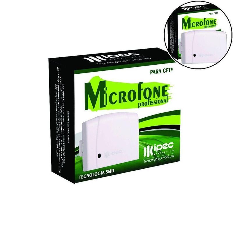 Microfone Ipec Profissional Para CftvO Microfone Ipec Profissional para CFTV é a solução ideal para garantir a qualidade sonora impecável em suas gravações. Compatível com todas as placas de captura e sistemas de CFTV do mercado, ele se adapta perfeitamente às suas necessidades. Com tecnologia SMD, o microfone oferece um som cristalino e nítido, capturando detalhes com precisão.A banda de áudio de 300 a 5000 Hz garante uma ampla gama sonora, ideal para registrar todas as nuances da comunicação. O ganho de amplificação de até 40 dB, ajustável através do Trimpot, permite otimizar a sensibilidade de acordo com o ambiente, garantindo uma captação de áudio impecável mesmo em situações desafiadoras.Com distorção harmônica inferior a 1%, o Microfone Ipec Profissional para CFTV garante a fidelidade sonora em todas as suas gravações. A área de captura de áudio de até 150 m2 cobre amplo espaço, ideal para ambientes como escritórios, lojas e residências. A versatilidade do microfone é garantida pelas duas configurações de saída: 600 ohms e 300 ohms, adaptando-se a diferentes sistemas de gravação.Invista na qualidade sonora profissional com o Microfone Ipec Profissional para CFTV.O Microfone Ipec Profissional para CFTV é a solução ideal para garantir a qualidade sonora impecável em suas gravações. Compatível com todas as placas de captura e sistemas de CFTV do mercado, ele se adapta perfeitamente às suas necessidades. Com tecnologia SMD, o microfone oferece um som cristalino e nítido, capturando detalhes com precisão.A banda de áudio de 300 a 5000 Hz garante uma ampla gama sonora, ideal para registrar todas as nuances da comunicação. O ganho de amplificação de até 40 dB, ajustável através do Trimpot, permite otimizar a sensibilidade de acordo com o ambiente, garantindo uma captação de áudio impecável mesmo em situações desafiadoras.Com distorção harmônica inferior a 1%, o Microfone Ipec Profissional para CFTV garante a fidelidade sonora em todas as suas gravações. A área de captura de áudio de até 150 m2 cobre amplo espaço, ideal para ambientes como escritórios, lojas e residências. A versatilidade do microfone é garantida pelas duas configurações de saída: 600 ohms e 300 ohms, adaptando-se a diferentes sistemas de gravação.Invista na qualidade sonora profissional com o Microfone Ipec Profissional para CFTV.