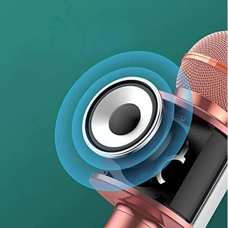 Microfone Wireless Bluetooth Karaokê Youtuber (WS-669)Microfone com Amplificador de voz embutidoConecta com celular / tablet via BluetoothPotência de 5WTotalmente PortátilBateria interna recarregávelESPECIFICAÇÃORecarregávelMaterial: ABS, alumínioFonte de Alimentação: USBAjuste de volumeBluetooth 3.0Rádio FMEntrada Para Cartão de MemóriaEntrada Para Fone de OuvidoPotência de Saída: 5WFaixa De frequência: 100Hz-10 KHzNível máximo de pressão sonora: >115DB 1KHZ TD