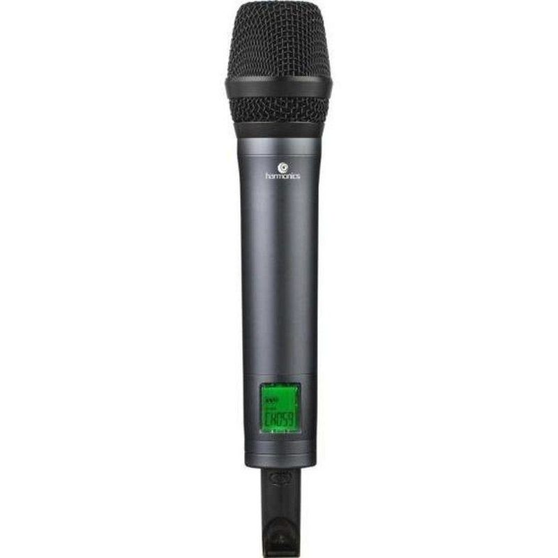 Microfone Sem Fio Harmonics Hsf-300 SimplesO Microfone Sem Fio Harmonics HSF-300 Simples é a solução ideal para você que busca qualidade profissional em apresentações ao vivo, karaokê, eventos corporativos e muito mais. Este sistema UHF multi-frequência garante uma performance impecável com seu display digital e função Auto Scan, proporcionando controle total sobre sua transmissão. O microfone de mão acompanha cápsula padrão polar cardioide, captando sua voz com clareza e nitidez, ideal para rejeitar ruídos indesejados. O receptor compacto e robusto possui tela LED que exibe informações essenciais como status da bateria e frequência selecionada. Com duas saídas XLR balanceadas, você conecta facilmente o HSF-300 a sua mesa de mixagem ou amplificador de som. O design durável do microfone e seu acabamento profissional garantem que ele seja o companheiro perfeito para longas apresentações, proporcionando confiabilidade e estilo. A Harmonics, empresa com mais de 50 anos de experiência no mercado musical, busca oferecer o melhor custo-benefício para seus clientes. Com uma resposta de frequência de 30 a 20 kHz, 100 frequências UHF, sensibilidade de