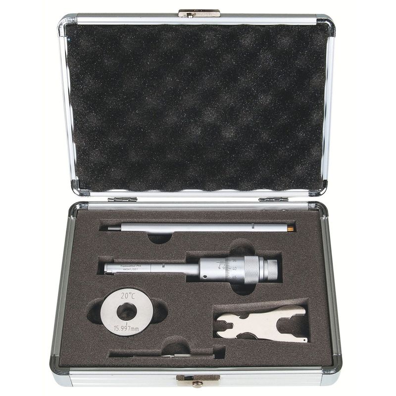 Micrômetro Interno de 3 Pontas Capacidade 20-25 mm Tramontina PRO Tramontina - Micrômetro Interno de 3 Pontas Capacidade 20-25 mm Tramontina PRO Com grande precisão, os micrômetros internos de 3 pontas são utilizados para fazer medições em furos, sendo que devido ao formato de suas pontas, permitem medir próximo ao fundo até mesmo em furos cegos. Em seu uso, o instrumento entra em contato com a parede do furo para medi-lo em 3 pontos e com isso, facilita a operação e aumenta a exatidão se comparado aos instrumentos com duas pontas, graças aos pinos de medição posicionados a distância de 120°. Com corpo em aço inoxidável e cobre, acabamento cromado, ponteiras de medição em metal duro e catraca, o micrômetro acompanha: estojo de alumÃnio, anel de calibração, chaves de aperto e prolongador do fuso. Ideal para os profissionais que não abrem mão da precisão e da qualidade. Corpo em aço inoxidável e cobre. Acabamento cromado. Ponteiras de medição em metal duro. Graduação: 0,005 mm. Exatidão: 0,004 mm.DIN 863-4. Com catraca. Estojo em alumÃnio. Acompanha anel de calibração, chaves de aperto e prolongador do fuso.Devido o formato das pontas, permite medição perto do fundo em furos cegos. O instrumento entra em contato com a parede do furo para medi-lo em 3 pontos.Esse sistema de contato em 3 pontos facilita a operação e aumenta a exatidão se comparado aos instrumentos com duas pontas graças aos pinos de medição posicionados a distância de 120°. Pode medir furos profundos utilizando o prolongador do fuso. Instrumento de extrema precisão, utilizado quando se necessita fazer medições em furos.Os instrumentos são produzidos e testados conforme normas especificas. Cuidados com o produto Use óculos, luvas e outros equipamentos de proteção individual (EPIs) de acordo com a tarefa a ser executada. Mantenha o equipamento sempre limpo para um melhor agarre e medição. Nunca ultrapasse os limites de escala do equipamento, evitando danos ao instrumento. Nunca desmonte o instrumento nem modifique qualquer um de seus componentes. Tal procedimento deve ser feito somente pela Tramontina. Não exponha os instrumentos de medição ao calor excessivo e a luz direta do sol. Nunca deixe as faces de medição totalmente fechadas. Recomenda-se que as mesmas fiquem ligeiramente separadas entre 0,2 a 1 mm.Após utilização, armazene o instrumento em sua caixa original ou embalagem apropriada.Evite quedas ou impactos ao instrumento. Isso pode danificar o mesmo e causar incertezas na medição. Limpe as faces de medição e partes móveis dos instrumentos antes e depois de realizar uma medição. A presença de partÃculas abrasivas pode causar desgaste prematuro das mesmas. Evite danos nas faces de medição. Evite também, usar as faces de medição dos paquÃmetros como compasso de traçagem. Lubrifique, sempre que possÃvel, os instrumentos de medição ao armazená-los por longos perÃodos. Utilize um pano com óleo fino contra oxidação. Armazene em local limpo e seco. Garantia Garantia total contra vÃcios ou defeitos de fabricação. - - Características Gerais do Produto: Garantia: • 3 Meses
