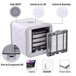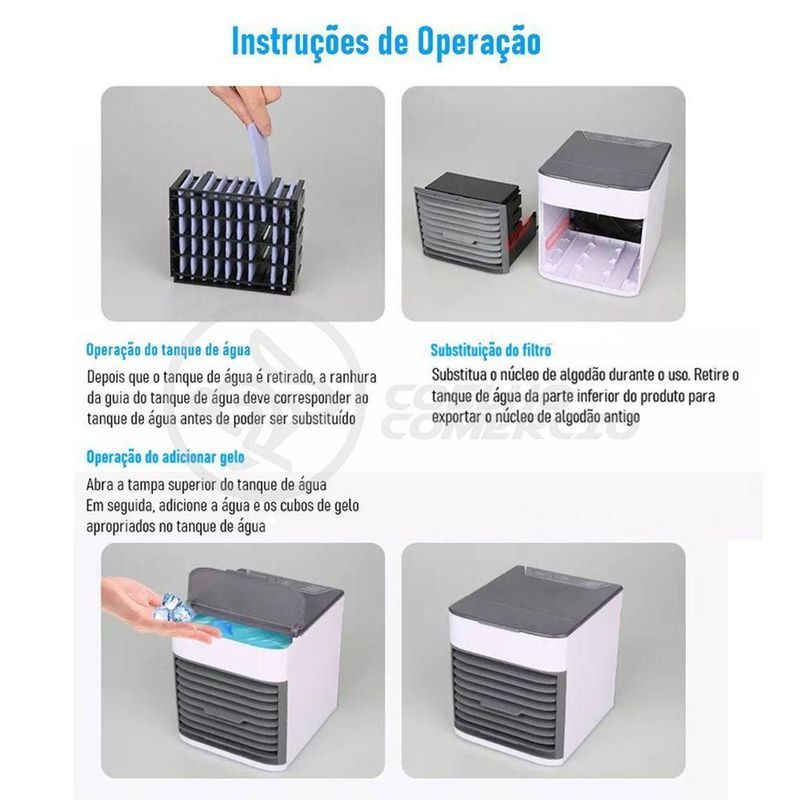 Mini Ar Condicionado Climatizador Humidificador Portátil Arctic Air Cooler 3 VelocidadesMini Ar Condicionado Portátil Arctic Air Cooler 3 VelocidadePerfeito para todas as estações do ano, pois funciona como ar-condicionado, purificador e umidificador de arVocê pode deixar em qualquer ambiente da casa, em escritórios, estabelecimentos, e onde você quiser Você pode fazer seus afazeres domésticos, deixar na mesa de estudos ou trabalho e se refrescar durante o verão.Possui 3 intensidades (forte, médio, fraco) e visor para identificar a velocidade.Possui botão para ligar ou desligar a luz de led que indica as velocidades.Para deixar o ambiente mais frio, molhe o filtro e coloque no congelador antes de usarA água do reservatório dura de 8 a 10 horas, dependendo da velocidade utilizada. Pode utilizar gelo também no reservatório.Refrigera até 2mDimensões: 17cm x 14,5cm x 16cmPeso: 850 gramasAlimentação: USB (funciona utilizando carregador de celular, powerbank ou conectando diretamente no notebook)Velocidade: 3 modos (Alto/Médio/Baixo)Capacidade do tanque de água: 700mlTipo de climatização: FrioPeso: 1kgÉ umidificador: SimÉ purificador de ar: SimCom função de ventilação: SimCapacidade de água: 0.5LPotência: 30WQuantidade de velocidades: 3Inclui controle remoto: NãoItens Inclusos1 Aparelho Mini Ar Condicionado1 Cabo USB (não acompanha caixa de alimentação).1 Manual de instruções em inglesINMETROCertificador: BRICSNº Certificado: 6356/2020-ELE-1