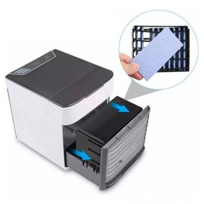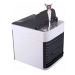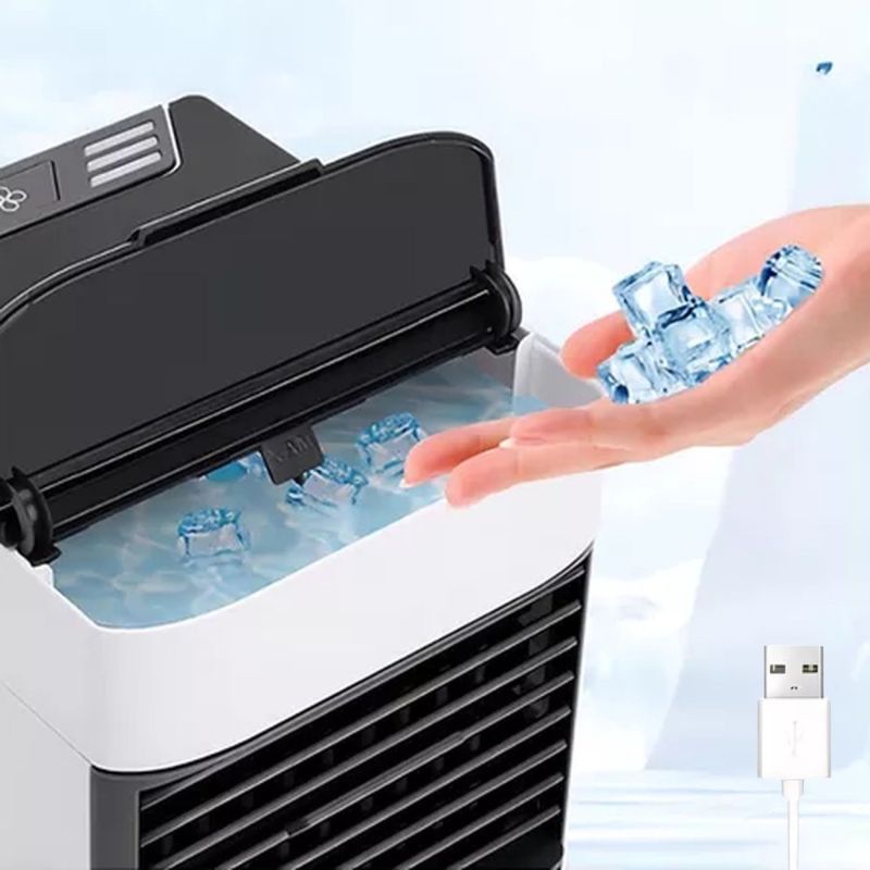 Mini Ar Condicionado Portátil Climatizador Umidificador Usb ===================================== O produto conta com 2 botões: POWER, para ligar o produto, que automaticamente começa a funcionar na velocidade baixa, e o botão de LUZ LED, que além de ligar o LED, também aciona o modo de humidificação do ambiente Compatível com dispositivos que possuem entrada USB, você pode levá-lo para qualquer lugar e transportá-lo facilmente em sua mochila. Esse produto não é um ar-condicionado e não deve ser esperado que resfrie uma sala ou quarto inteiro. É um produto portátil para uso Pessoal É importante destacar que conforme você aumenta a velocidade do mini Climatizador, o som da ventilação irá aumentar. Melhora a qualidade do ar: A função de umidificação combate o ressecamento provocado no ambiente pelo próprio Climatizador, melhorando a circulação do ar durante o uso. ===================================== Contém: 01 Mini Climatizador 01 Cabo USB *** ATENÇÃO *** O Produto é um mini Climatizador que gera um vento gelado ao adicionar água gelada ou gelo Especificações: - Medida: 16cm x 14,5cm - Velocidades: 03 (baixa. média, alta) - Alimentação: USB - Voltagem: Bivolt - Filtro Removível e Lavável - Elimina Poeira, Germes e Bactérias presentes no ar - Cor: Branco ===================================== Devido à diferença entre monitores e iluminação diferentes, pode haver variação na tonalidade apresentada no anúncio. Medidas muito aproximadas.