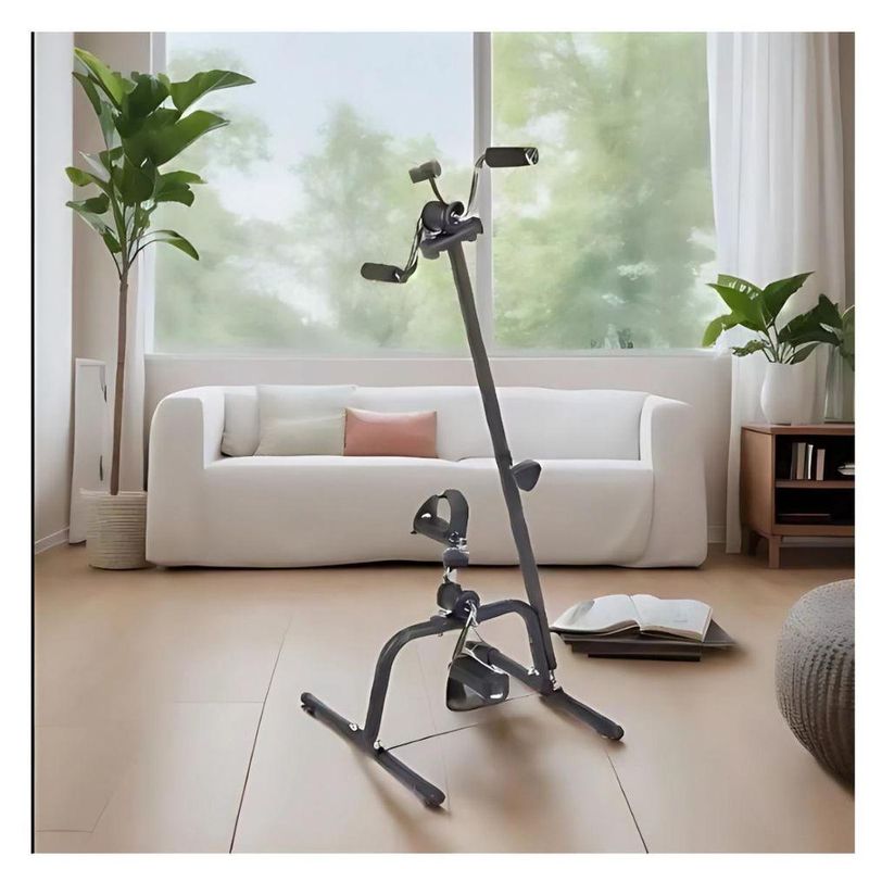 Mini Bicicleta Ergométrica Braços E Pernas FisioterapiaO QUE VOCÊ IRÁ RECEBER01 Mini Bicicleta Ergométrica Portátil para Movimento de Braços e Pernas01 Manual de InstruçõesMINI BICICLETA ERGOMÉTRICA PORTÁTIL – COMPACTA, EFICIENTE, SEGURA E ESTÁVELA Mini Bicicleta Ergométrica Portátil é a solução ideal para quem busca praticidade e eficiência nos exercícios diários. Indicada para reabilitação, fisioterapia, uso residencial, clínicas e até ambientes hospitalares, é perfeita para manter o corpo ativo com segurança e conforto.Com design compacto e portátil, pode ser utilizada para fortalecimento muscular, melhora da mobilidade e estímulo da circulação sanguínea. É especialmente recomendada para idosos, pessoas em recuperação pós-lesão e para quem deseja realizar exercícios de baixo impacto.CARACTERÍSTICAS PRINCIPAISDesign Portátil e CompactoLeve e fácil de transportar, pode ser utilizada em diferentes ambientes. Seu tamanho compacto facilita o armazenamento quando não estiver em uso.Versatilidade de ExercíciosPermite exercitar membros superiores e inferiores, proporcionando um treino completo para braços e pernas. Auxilia no fortalecimento muscular, mobilidade articular e melhora da circulação.Regulagem de IntensidadePossui botão ajustável de tensão que permite variar a resistência do pedal, adaptando o exercício ao seu nível de condicionamento físico.Base AntiderrapanteEstrutura com base estável e antiderrapante, oferecendo maior segurança durante o uso e evitando deslizamentos.BENEFÍCIOSCondicionamento FísicoAuxilia no fortalecimento muscular, aumento da resistência e manutenção da mobilidade.Fisioterapia e ReabilitaçãoIndicada por profissionais para recuperação muscular, exercícios pós-trauma e estímulo da circulação, ajudando na prevenção de varizes e câimbras.Exercícios de Baixo ImpactoMovimentos suaves que protegem as articulações, permitindo treinos seguros e confortáveis.ESPECIFICAÇÕES TÉCNICASMaterial: Aço resistenteCor: PretoRegulagem de intensidade: SimPeso máximo suportado: 200 kgDimensões aproximadas: 40,5 cm (comprimento) x 40 cm (largura) x 96 cm (altura)Peso do produto: 2 kgPERGUNTAS FREQUENTESQuais partes do corpo podem ser exercitadas?Pode ser utilizada para fortalecer braços e pernas, promovendo melhora da circulação e resistência física.É indicada para fisioterapia e reabilitação?Sim. É recomendada para exercícios de baixo impacto e recuperação muscular.É dobrável?Não é dobrável, porém é leve, compacta e fácil de transportar e armazenar.Qual o limite de peso suportado?Suporta até 200 kg, oferecendo estabilidade e segurança.É possível ajustar a intensidade?Sim. Possui botão de tensão ajustável para personalizar o nível de resistência do treino.Produto prático, resistente e ideal para manter a rotina de exercícios com segurança e eficiência.