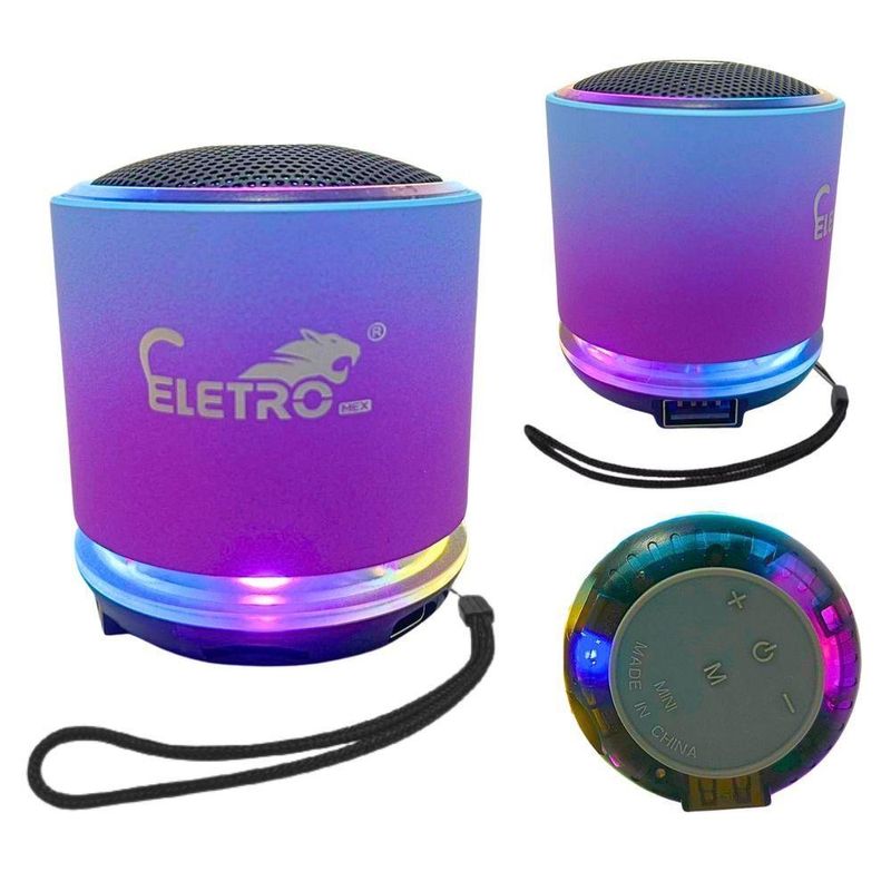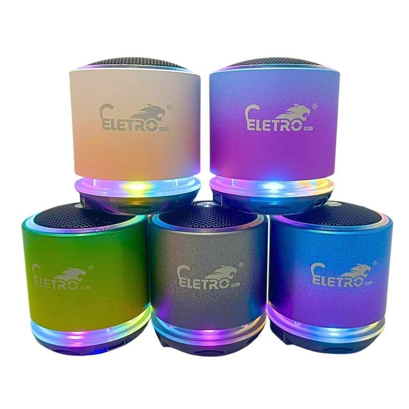 Mini Caixa De Som Bluetooth Usb 10w Led RgbCódigo de barras: 7891102410902 Homologação Anatel: 09878-23-13889 Mini Caixa de Som Bluetooth USB 10W LED RGB Marca: Eletromex A Mini Caixa de Som Bluetooth USB Eletromex EL-1090 é um dispositivo de áudio portátil, ideal para quem busca som de qualidade em um formato compacto com recursos visuais. Ela oferece uma Potência de Saída (RMS) de 10W, proporcionando um som limpo e nítido. A principal forma de conexão é via Bluetooth V5.3 permitindo o emparelhamento sem fio a uma distância de até 10 metros. Além da conexão sem fio, a caixa possui múltiplas entradas, aumentando sua versatilidade. É compatível com reprodução de arquivos a partir de um pendrive via porta USB, de um cartão de memória através da entrada para Cartão TF/MicroSD, e inclui também a função Rádio FM. Em termos de portabilidade, a caixa é alimentada por uma bateria interna recarregável via cabo USB (DC 5V). A autonomia de reprodução é de aproximadamente 2 a 4 horas, dependendo do volume e do uso contínuo das luzes de LED. O design é mini e compacto, usualmente feito em plástico ABS com uma grade de proteção, e pode contar com uma alça ou cordão para facilitar o transporte e LED RGB. Disponível nos tons: -Degrade Azul -Degrade Verde -Degrade Preto -Degrade Branco -Degrade Rosa Medidas da embalagem: L: 10,0 x C: 8,5 x A: 10,5cm Peso do Produto: 195g