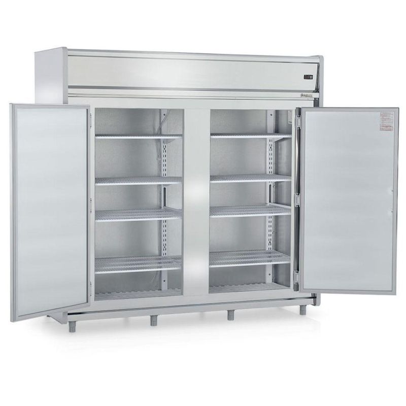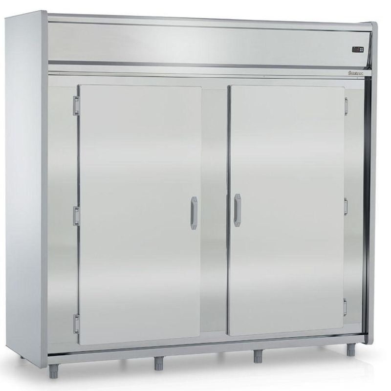 Mini Câmara Refrigerada 2 Portas Com Prateleira Gmcr2600ps Gelopar Mini Câmara 2544 Litros Inox 220vMini Câmara Refrigerada 2 Portas com Prateleira GMCR2600AIPS Gelopar. Conservação e Exposição de carnes (não congeladas). Ideal para supermercados, açougues, mercearias e similares. Temperatura: 0 a +7C. Refrigeração: Ar forçado com evaporador aletado. Controlador eletrônico com indicador de temperatura. Degelo: Automático. Revestimento Externo: aço inox 430. Revestimento Interno: aço galvanizado. Ganchos para tendal. Pés niveladores. Alta capacidade de armazenamento. Estrado em PVC. Acompanha prateleira + suporte. CAPACIDADE: 2544L. TEMPERATURA: 0 a +°7C. CONSUMO: 11,54 kWh/dia. PESO: 291kg. DIMENSÕES EXTERNAS (CxAxL): 219,1x222,5x86,2cm. Equipamento certificado conforme Portaria Inmetro nº 371/2009. Mini Câmara Refrigerada 2 Portas com Prateleira GMCR2600AIPS Gelopar é na Atau.Marca - GeloparModelo - GMCR2600AIPSCapacidade - 2544 LitrosFrente - 219,1cmAltura - 222,5cmProfundidade - 86,2cmTemperatura - 0 a +°7CPeso - 291kgConsumo - 11,54kWh/diaPortas - 2 Portas