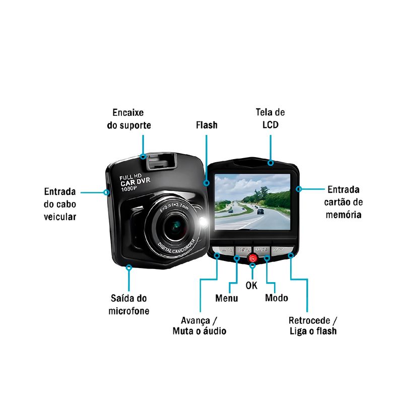 Transforme Seu Carro em Uma Fortaleza de Segurança com Nossa Câmera Veicular! Garanta segurança e tranquilidade em todas as suas viagens com uma câmera veicular moderna, eficiente e cheia de recursos inteligentes. Principais Características: Resolução Full HD 1080P: Vídeos nítidos e ricos em detalhes. Ângulo de Visão de 170º: Captura ampla da estrada e das laterais. Visão Noturna com LED: Imagens claras mesmo em ambientes com pouca luz. Sensor de Gravidade (G-Sensor): Salva automaticamente os arquivos em caso de colisão. Gravação em Loop: Substitui os vídeos antigos para economizar espaço. Detecção de Movimento: Inicia a gravação ao identificar movimentações. Compatível com Cartão TF de até 32GB: Armazenamento expansível. Tela de Alta Definição: Visualize gravações com nitidez e facilidade. Fonte de Alimentação 5V 1.5A: Recarregável e prática. Formato de Imagem: JPEG Velocidade de Transmissão: USB 2.0 Alto-Falante Integrado: 8Ω 1W para reprodução de áudio. Lente: 6 camadas de vidro com alta resolução. Saída de Vídeo: HDMI (alta definição) e AVOUT. Segmentação de Vídeo: Escolha entre clipes de 2, 3 ou 5 minutos. Cor: Preto Itens Inclusos: 01x Câmera Veicular 01x Fonte de Energia 01x Suporte para Fixação