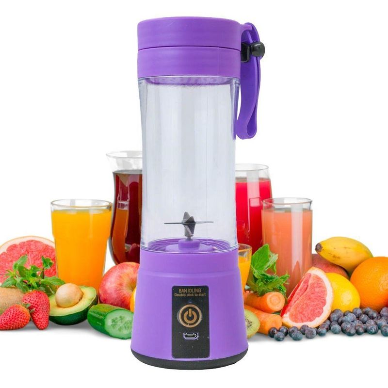 Mini Liquidificador Juice Cup Portátil Elétrico Suco - Tritura Frutas E Gelo Para Sucos Frescos Em Segundos lilásMini Liquidificador Portátil – Seu Suco Fresquinho em Segundos!Desfrute de sucos naturais e vitaminas fresquinhas a qualquer hora e em qualquer lugar!Com este mini liquidificador portátil, você diz adeus aos sucos industrializados sem sabor.Perfeito para levar na bolsa,mochila ou para a academia.Praticidade e Portabilidade: Leve e compacto, ideal para o dia a dia.Potência e Eficiência: Tritura frutas, gelo e ingredientes congeladoscom facilidade, garantindo bebidas homogêneas e cremosas.Design Moderno: Acabamento elegante que combina com seu estilo.Especificações Técnicas:Material: ABS e Aço InoxDimensões: 23,5 cm (altura) x 8 cm (largura)Motor: DC 3,6VRotação: 22.000 RPMCorrente: 10A – 12ACapacidade: 380mlLâminas: 6 lâminas de aço inoxItens Inclusos:01x Mini Liquidificador Portátilvipshop