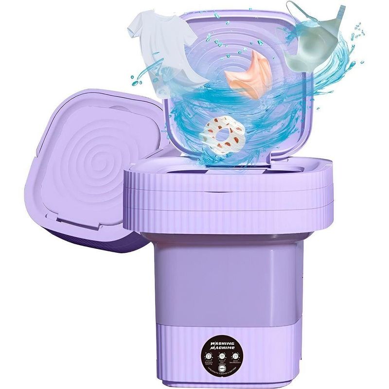 Mini Máquina De Lavar Roupas Dobrável Portátil 12 Litros lilásMini Máquina de Lavar Portátil – Praticidade e MobilidadeLave suas roupas com liberdade e eficiência,mesmo em espaços reduzidos! Ideal para apartamentos pequenos,viagens, acampamentos e motorhomes. Perfeita pararoupas delicadas e itens de bebê, garantindo higiene e cuidado.Portátil e leve: fácil de transportar para qualquer lugar.Lavagem segura: separa peças delicadas e higiênicas.Dreno prático: escoamento rápido da água suja.Modos de lavagem: 3, 5 e 10 minutos.Capacidade: 12L, com alimentação bivolt.Design compacto: dimensões aproximadasde 28x28x20cm (aberto) e 28x28x15cm (fechado).Classificação IPX4: resistência à água.Itens inclusos: mini máquina, fonte de alimentação e cesta.vipshop