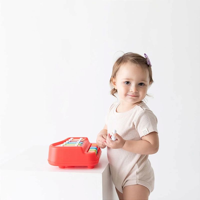 Mini Piano Xilofone - Pimpolho O mini piano e xilofone possui 5 notas musicais com baqueta, que está localizada na parte inferior do brinquedo. Auxilia no crescimento da criança, estimula e aprimora as habilidades sensoriais, desenvolvendo a percepção auditiva, visual, a criatividade, a concentração, a coordenação motora e a imaginação. Cor: Vermelho Modo de Uso: Produto atóxico. Não expor à luz do sol para evitar o envelhecimento do produto. Faixa Etária: 12 Meses+ Registro do Inmetro: 000817/2023
