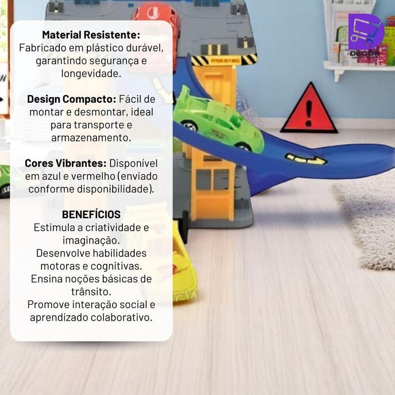 Mini Pista Estacionamento De Brinquedo Com 12 PeçasPerfeita para estimular a imaginação e a criatividade das crianças, proporcionando momentos de diversão e aprendizado. Com um design colorido e cheio de detalhes, esse conjunto simula um estacionamento real, permitindo que os pequenos criem diferentes cenários e desenvolvam suas habilidades motoras e cognitivas.O conjunto conta com 12 peças, incluindo rampas, placas de sinalização, 01 veículo e estruturas que tornam a brincadeira ainda mais completa. Feito com materiais resistentes e seguros, possui bordas arredondadas para garantir a segurança durante o uso. Fácil de montar e desmontar, essa pista pode ser configurada de diferentes formas, incentivando a criatividade e permitindo que a criança explore novas possibilidades a cada brincadeira, ideal para crianças a partir de 3 anos, esse brinquedo contribui para o desenvolvimento da coordenação motora, noções espaciais e reconhecimento de elementos do trânsito, tornando o aprendizado divertido. Além disso, pode ser utilizado tanto individualmente quanto em grupo, estimulando a socialização. Compacta e leve, a pista é fácil de transportar e pode ser levada para qualquer lugar, garantindo a diversão em casa, na escola ou em viagens.Especificações;Material: PlásticoDimensão da pista: Alt.: 10cm x Comprimento:19 cmPeso: Aprox.: 230gAcompanha 01 carrinho (sortido )Com Painel Para Recortar-REGISTRO INMETRO: 004527/2024Contém;01 Mini Pista Estacionamento de Brinquedo com 12 PeçasPerfeita para estimular a imaginação e a criatividade das crianças, proporcionando momentos de diversão e aprendizado. Com um design colorido e cheio de detalhes, esse conjunto simula um estacionamento real, permitindo que os pequenos criem diferentes cenários e desenvolvam suas habilidades motoras e cognitivas.O conjunto conta com 12 peças, incluindo rampas, placas de sinalização, 01 veículo e estruturas que tornam a brincadeira ainda mais completa. Feito com materiais resistentes e seguros, possui bordas arredondadas para garantir a segurança durante o uso. Fácil de montar e desmontar, essa pista pode ser configurada de diferentes formas, incentivando a criatividade e permitindo que a criança explore novas possibilidades a cada brincadeira, ideal para crianças a partir de 3 anos, esse brinquedo contribui para o desenvolvimento da coordenação motora, noções espaciais e reconhecimento de elementos do trânsito, tornando o aprendizado divertido. Além disso, pode ser utilizado tanto individualmente quanto em grupo, estimulando a socialização. Compacta e leve, a pista é fácil de transportar e pode ser levada para qualquer lugar, garantindo a diversão em casa, na escola ou em viagens.Especificações;Material: PlásticoDimensão da pista: Alt.: 10cm x Comprimento:19 cmPeso: Aprox.: 230gAcompanha 01 carrinho (sortido )Com Painel Para Recortar*IMAGEM MERAMENTE ILUSTRATIVA*-REGISTRO INMETRO: 004527/2024Contém;01 Mini Pista Estacionamento de Brinquedo com 12 Peças