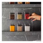 Seja bem-vindo(a) a Loja NIVALMIX, Os Mini Potes Hermético Quadrado Lumini 180ml ajudam a manter os alimentos frescos por mais tempo devido a sua excelente qualidade de vedação. Pote ideal para você organizar seus temperos, especiarias, castanhas. São empilháveis e herméticos. Características: • Marca: Paramount • Composição: Acrílico • Dimensões: 6,5 x 6,5 x 8 cm (CxLxA) • Peso: 50gr • Cor: Transparente • Modelo: 1978 Itens inclusos: • 1 Mini Pote Hermético com tampa Quadrado 180ml, 6,5 x 6,5 x 8 cm As cores podem variar entre as imagens mostradas acima e o produto. Imagens meramente ilustrativas.
