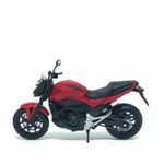 Miniatura Moto Esportiva Honda Nc750s Ano 2018 Welly Nc750Miniatura de moto Honda NC750S, 2018, da linha California Cycle, na escala 1:18.Produzida em plástico com partes em metal (tanque em metal), apresenta pneus emborrachados e pintura nas cores vermelha e preta.Comnto aproximado: 10,5 cm.Não acompanha base.OBS: Não recomendável para menores de 3 anos.