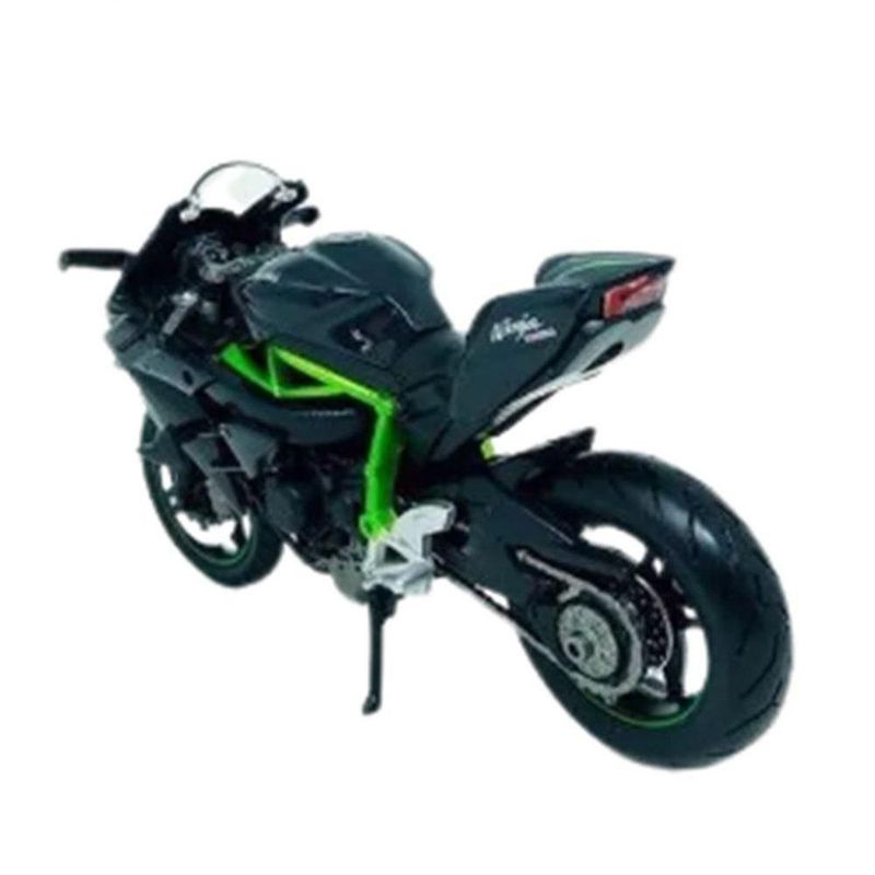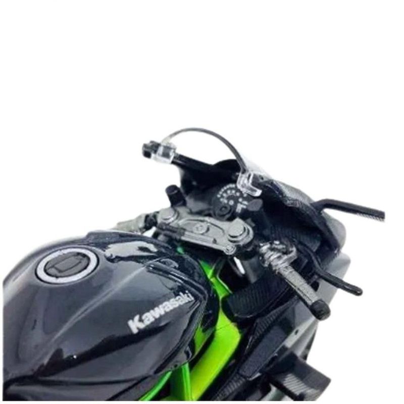 Miniatura Moto Kawasaki Ninja H2r Esportiva Para ColecionarMiniatura Moto Kawasaki Ninja H2R - Preta - 1:12Miniatura de moto Kawasaki Ninja H2R, na escala de 1:12.Produzida em plástico e metal (somente o tanque é em metal), apresenta pneus emborrachados e pintura nas cores preta e verde.Comnto aproximado: 16,3 cm.OBS: Não recomendável para menores de 8 anos.