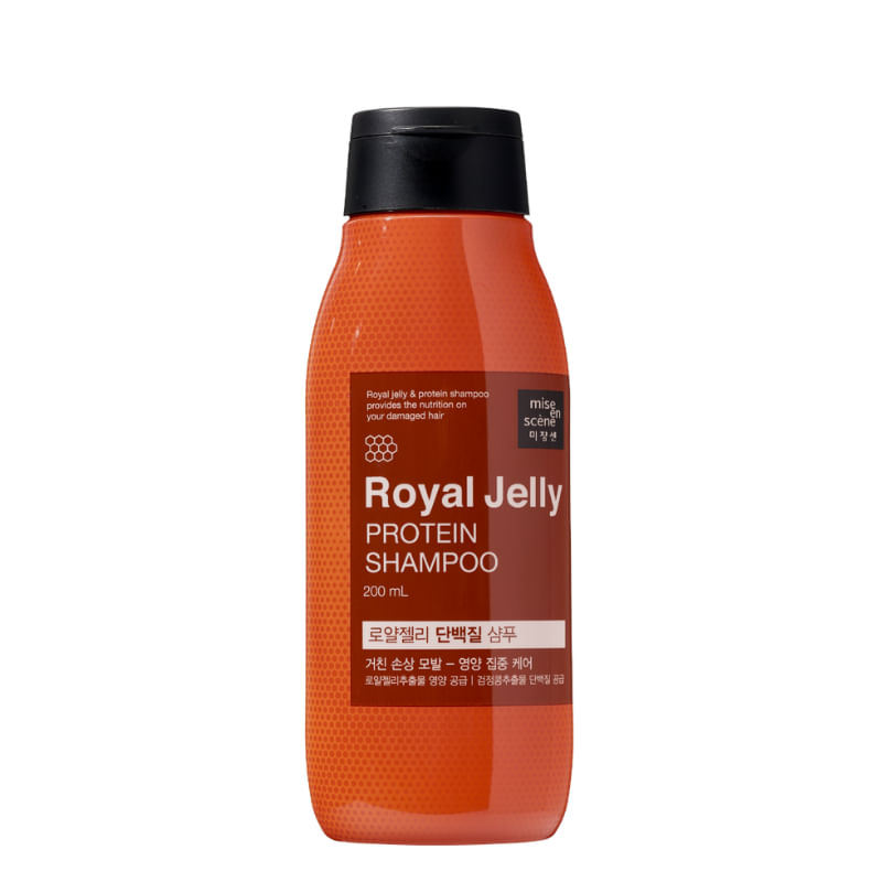 Mise en Scène Royal Jelly Protein Shampoo. Mise en Scène Royal Jelly Protein nutre, repara e fortalece cabelos danificados intensamente. O Shampoo Mise en Scène Royal Jelly Protein é uma poderosa solução para cabelos danificados por químicas e agressões térmicas, oferecendo nutrição e reparação intensiva. Formulado com ingredientes premium, como Geleia Real, Proteína do Feijão Preto e óleo de girassol, esse shampoo proporciona uma experiência única e revitalizante para seus cabelos. Com o conceito de "protein filling", esse shampoo repõe as proteínas perdidas, reconstruindo a fibra capilar e devolvendo vitalidade e beleza aos cabelos danificados.