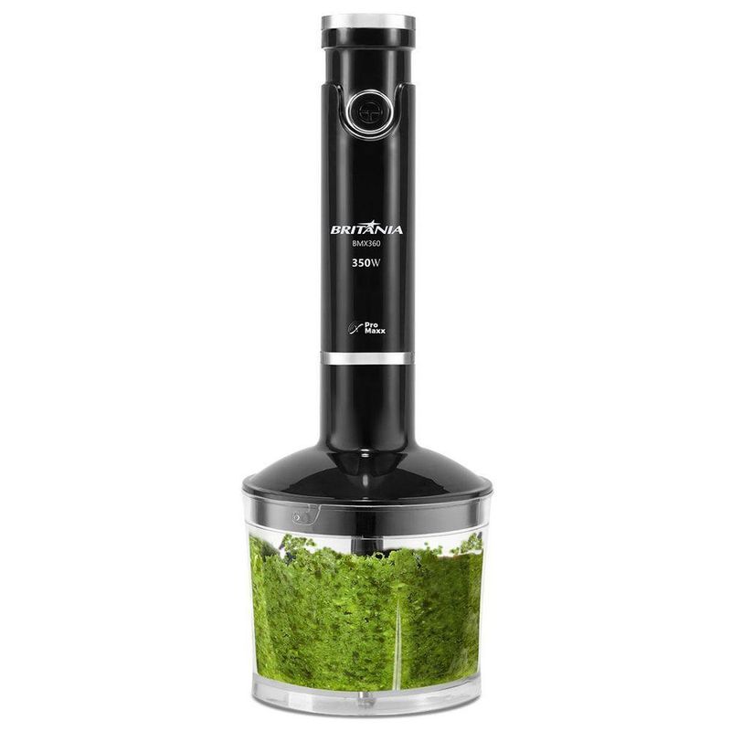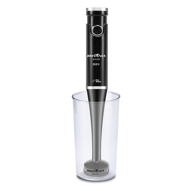 Mixer Britânia BMX360 2 Em 1 350W 110VQue tal atingir a melhor textura nas suas receitas? Para isso, o Mixer Britânia BMX360 2 em 1 350W é a escolha ideal!São 350W de potência, ideal para preparar receitas das mais elaboradas até as mais simples. Por ser 2 em 1, pode ser usado como mixer ou como processador de alimentos, assim você ganha muito mais versatilidade para os preparos na sua cozinha!Com 1 velocidade + função pulsar, o Mixer Britânia BMX360 entrega alta performance para misturar e triturar até os alimentos mais difíceis.Além disso, o mixer é equipado com lâminas Pro Maxx em aço inox com altíssimo poder de trituração, resultando em maior resistência e durabilidade do seu produto.E se não bastasse, o Mixer Britânia possui um design ergonômico! Sendo assim, o corpo é desmontável e facilita muito na hora da limpeza e do armazenamento.Sua cozinha precisa e você merece um Mixer Britânia BMX360 2 em 1 350W!Principais Características- Design Ergonômico- 1 velocidade- Acompanha Lâmina, copo e processador- Lâmina em inox - Pro Maxx- Corpo desmontável- Mixer 2 em 1 – Mixer e processador de alimentos.Observação - Somente faturamos para o nosso consumidor final, ou seja, não faturamos pedidos para CNPJ por este portal de vendas; #Especificações TécnicasMarca: BritâniaModelo: BMX360Cor: PretoGarantia: 360 DiasEstado: NovoPotência: 350 WVelocidades: 1Corpo desmontável: SimCapacidade: 1,05 LMaterial das lâminas: Aço InoxAltura do produto: 36,5 cmLargura do produto: 5,5 cmComprimento do produto: 6,6 cmPeso do produto: 0,91 kgAltura com embalagem: 20 cmLargura com embalagem: 20,6 cmComprimento com embalagem: 14,4 cmPeso com embalagem: 1,044 kg