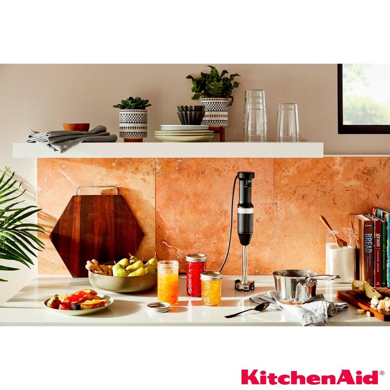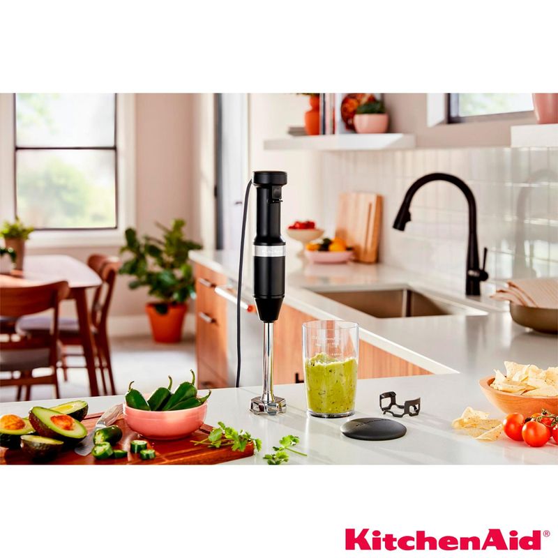 Mixer de Mão com Velocidade Variável ideal para Triturar, Misturar e LiquefazerO Mixer de Mão com Velocidade Variável é ideal para inspirar sua criatividade na cozinha, com alta performance e fácil manuseio. Seu botão sensível ao toque permite diferentes intensidades em instantes, dando maior flexibilidade e controle sobre as receitas e podendo ser manuseado com apenas uma mão, enquanto o design da lâmina em aço inox com quatro pontas garante que os ingredientes sejam transformados com facilidade.DestaquesAlta PerformanceO Mixer de Mão com Velocidade Variável possui lâmina com design aperfeiçoado em/de quatro pontas, garantindo que os ingredientes sejam transformados com facilidade em deliciosas receitas. Em aço inox, a lâmina multiuso permite triturar, misturar e liquefazer, podendo criar purês, sopas, molhos, cremes e smoothies com frutas congeladas na consistência perfeita! Fácil ManuseioO novo botão de velocidade variável permite que o Mixer seja manuseado facilmente com apenas uma mão e sem interrupções. Sensível ao toque, ele permite diferentes intensidades em instantes, proporcionando um maior controle e flexibilidade de uso, se adaptando a cada receita.Acessórios InclusosO Mixer de Mão inclui um copo de 700ml livre de BPA com tampa, ideal para preparos individuais ou para servir, além do protetor de panelas removível, que ajuda a proteger as panelas e outras superfícies de riscos e danos. Designer com PropósitoAlém da lâmina multiuso, ideal para diversas criações na cozinha, o Mixer possui braço removível de 20cm, elaborado para misturar os ingredientes de forma eficiente em qualquer recipiente, incluindo panelas mais fundas, tigelas e jarras. Fácil LimpezaO braço removível, o copo de 700ml e o protetor de panelas podem ser lavados em lava-louças.CaracterísticasTipo: Mixer de MãoVelocidades: Velocidade VariávelCapacidade da Jarra: 0,7 LitrosFunções: Triturar, misturar e liquefazerHaste DestacávelEspecificações TécnicasModelo: KEB53APANAComprimento do Fio: 1524 mmPotência: 60 WConsumo de Energia: 0,18 kwh/mêsVoltagem: 110VCor: Black MatteEAN: 7891129534452Garantia: 12 mesesDimensões e PesoDimensões do produto sem embalagem (AxLxP): 414x90,6x63,5 mmDimensões do produto com embalagem (AxLxP): 125x125x340 mmPeso do produto sem embalagem: 0,935 KgPeso do produto com embalagem: 1,24 KgItens Inclusos01 Mixer01 Copo de 700ml livre de BPA com tampa 01 Protetor de panelas removível